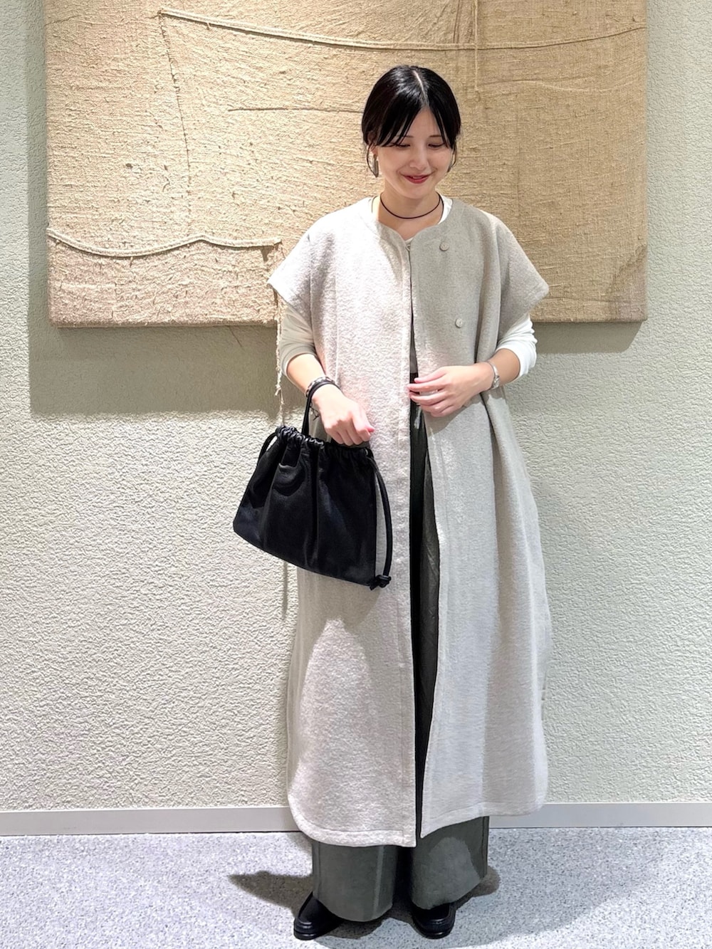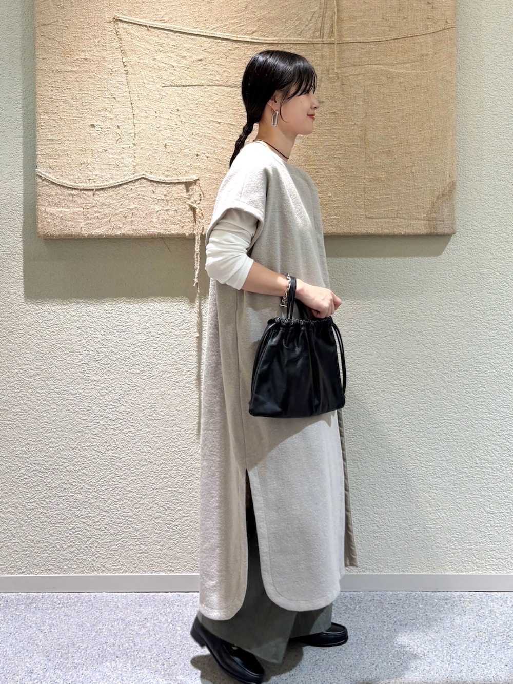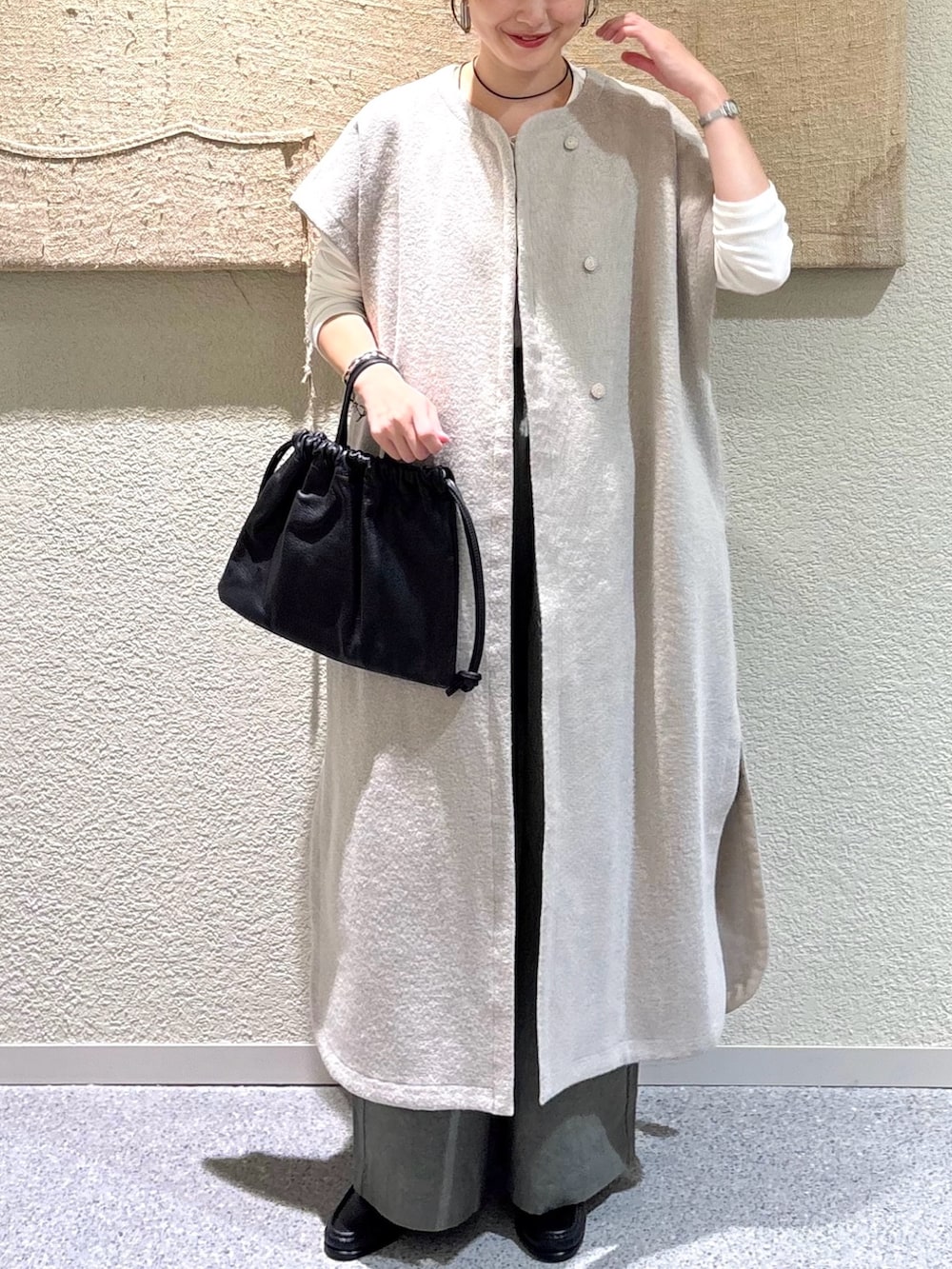 ・異素材レイヤードで奥行きのあるスタイルに仕上げました