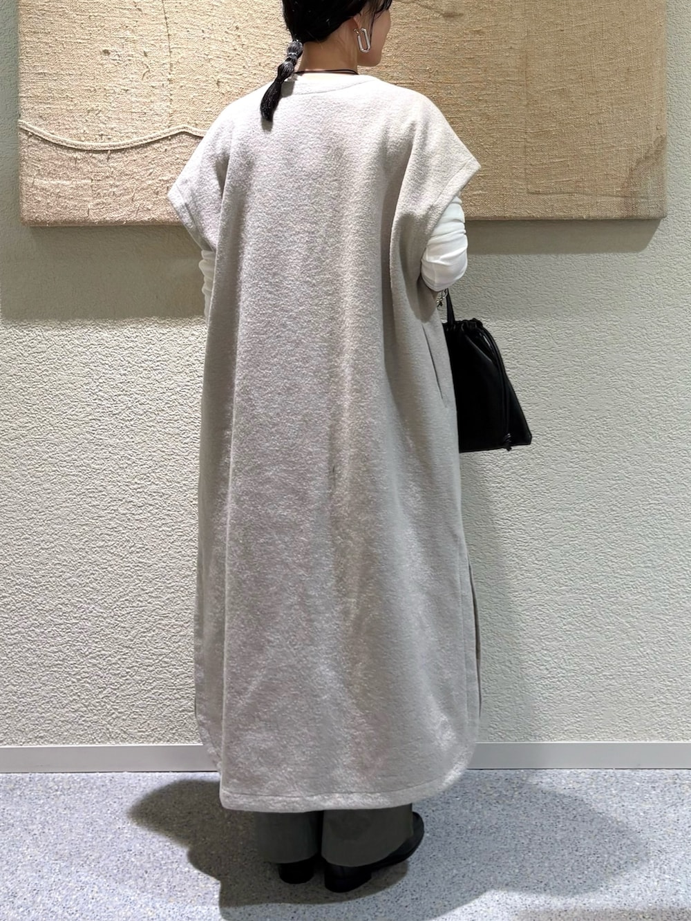 立体感のあるウールミルド素材が上質さを引き立てるジレワンピース。ロング丈のシルエットが縦ラインを強調し、すっきりと洗練された印象に。レイヤードするだけでこなれ感が生まれます。