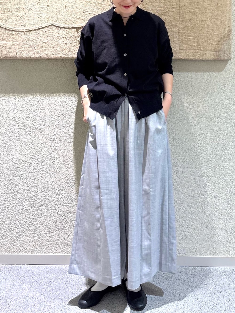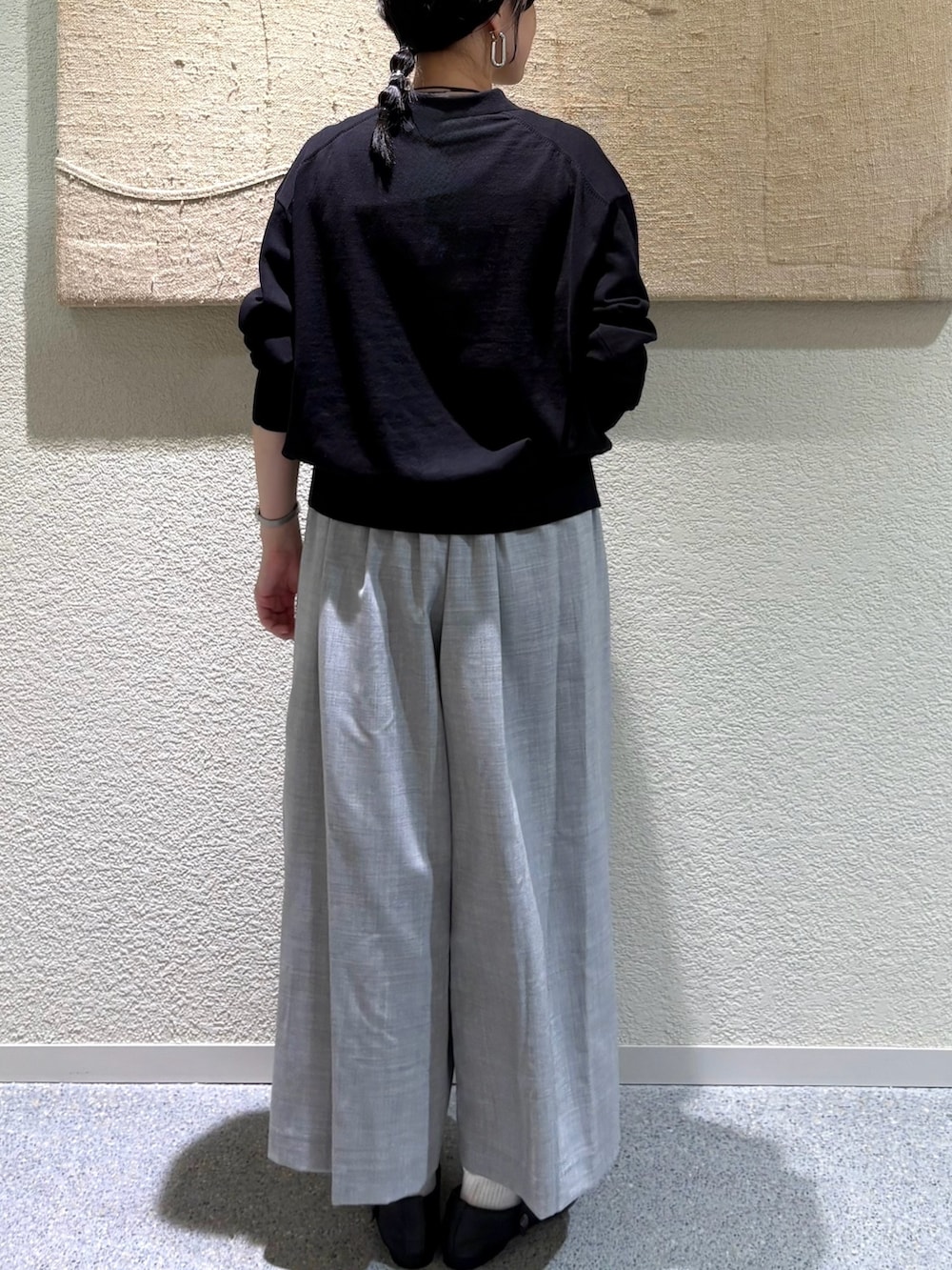 ウォッシャブル仕様でデイリーに使いやすいウールイージーパンツ。落ち感のあるシルエットが上品で、脚のラインをすっきり見せてくれます。クリーンなグレーがモノトーンのスタイリングに調和します。