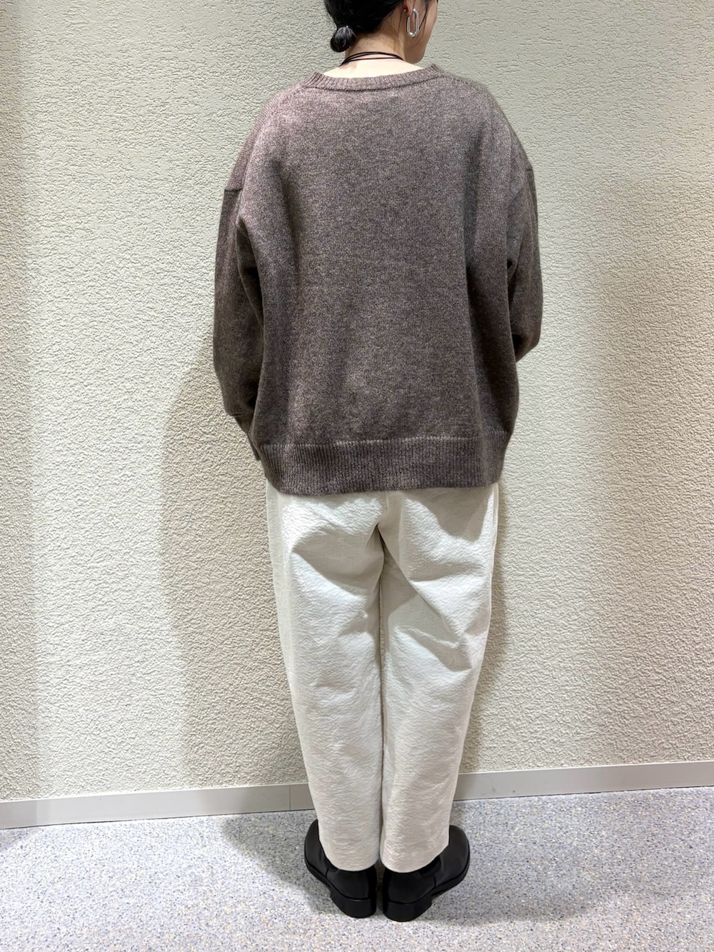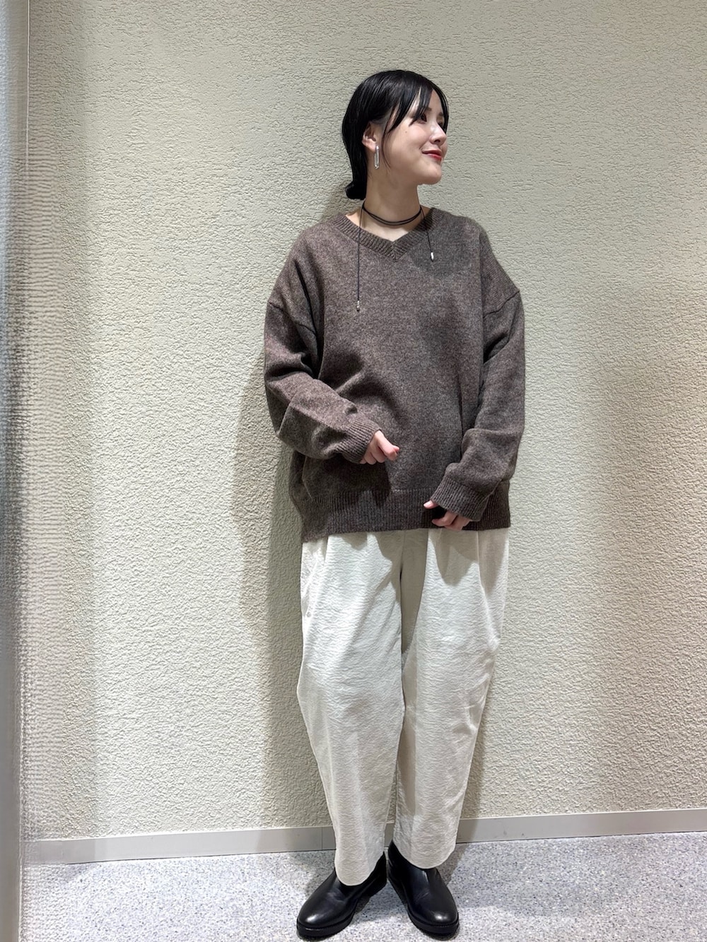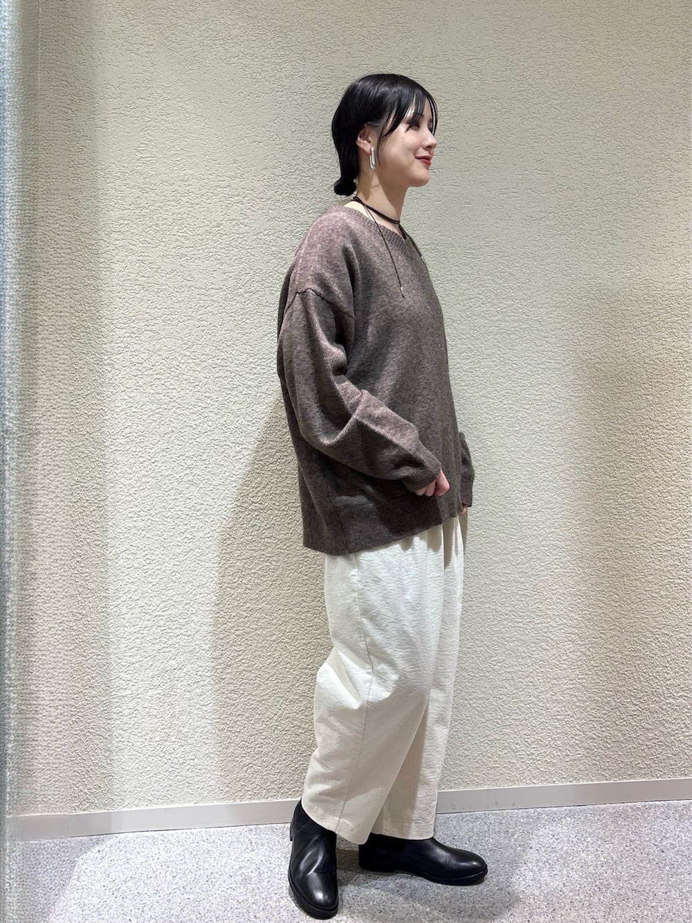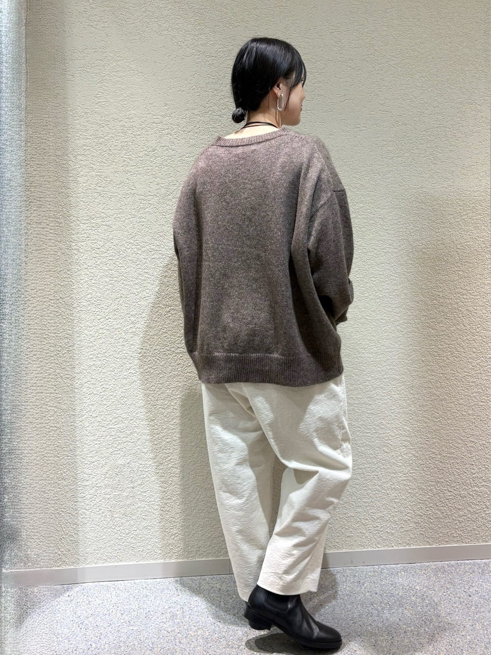 程よいゆとりが抜け感を生み、落ち着いたモカカラーが上品な雰囲気を演出。