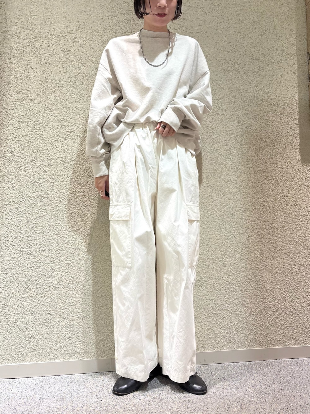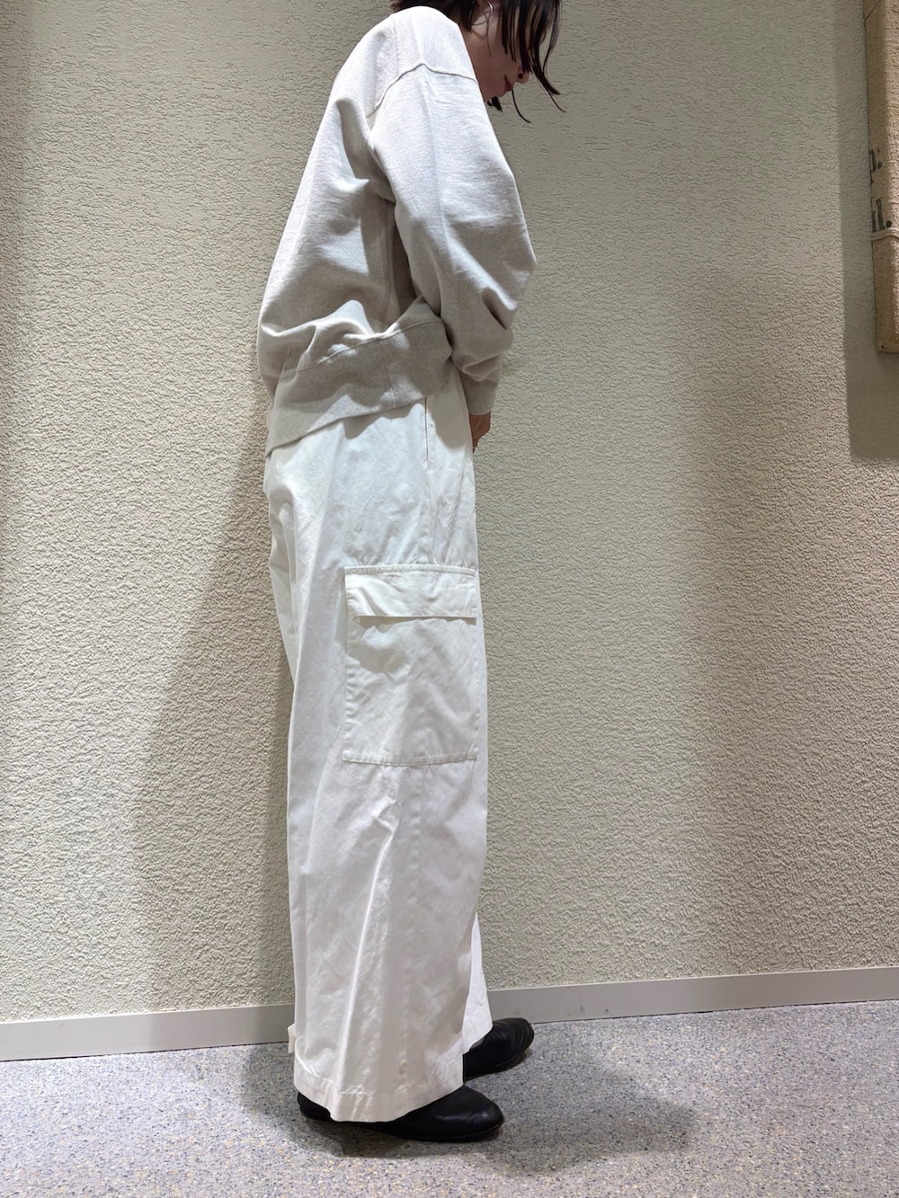 裾のボタン位置をかえるとテーパードシルエットになるのもこのパンツのポイントです!