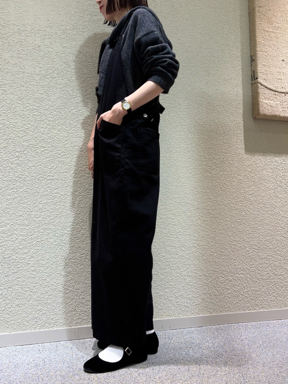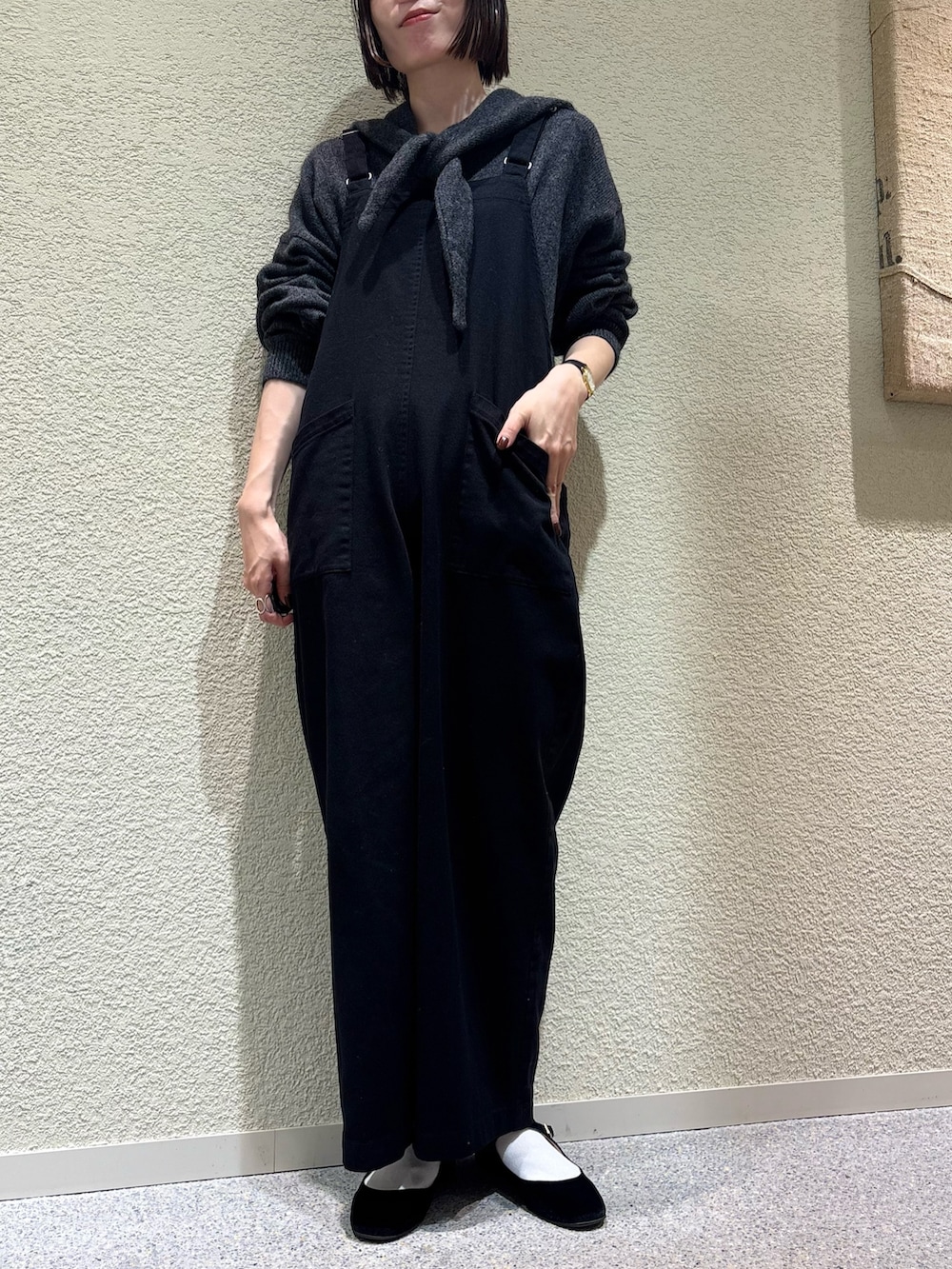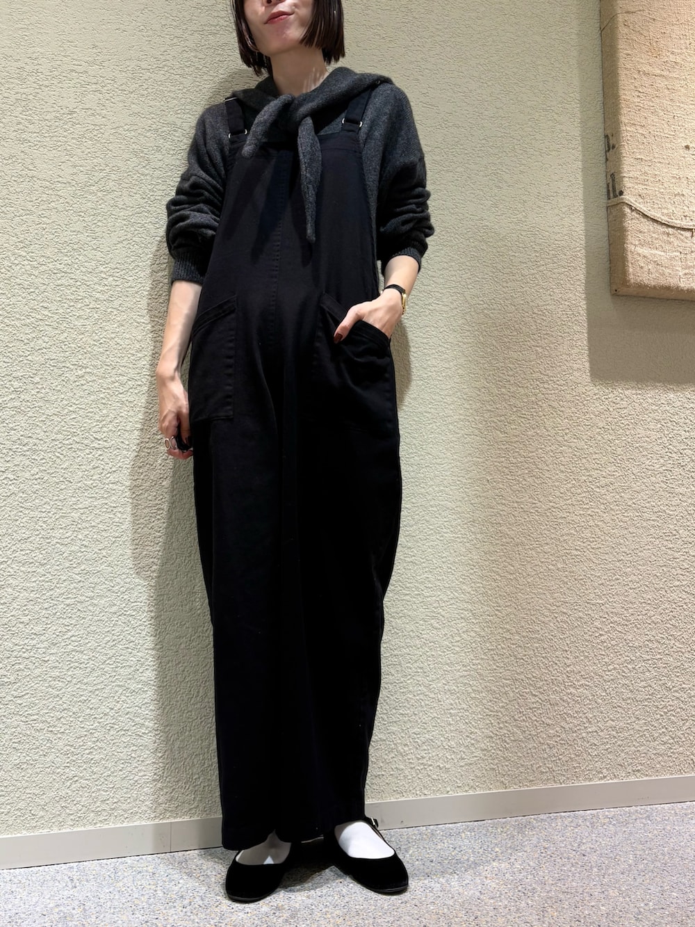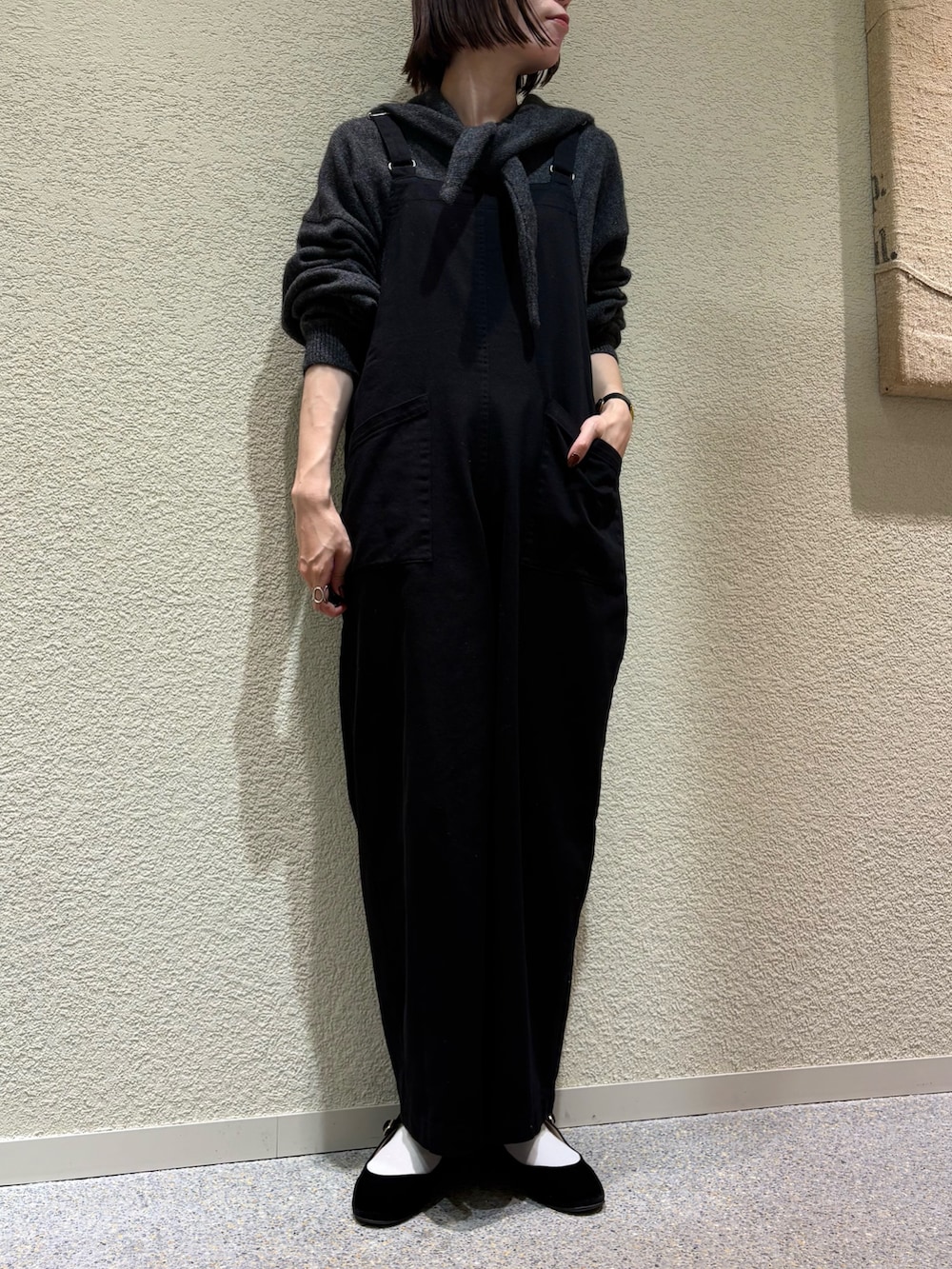 分厚すぎ薄すぎずのちょうどいい綿素材のサロペットなので、あわせるインナー次第で通年着用できます◎
