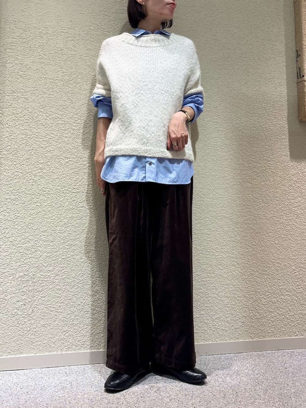シャツやロンT、ワンピースなど様々なアイテムとレイヤードスタイルを楽しめる1着です。