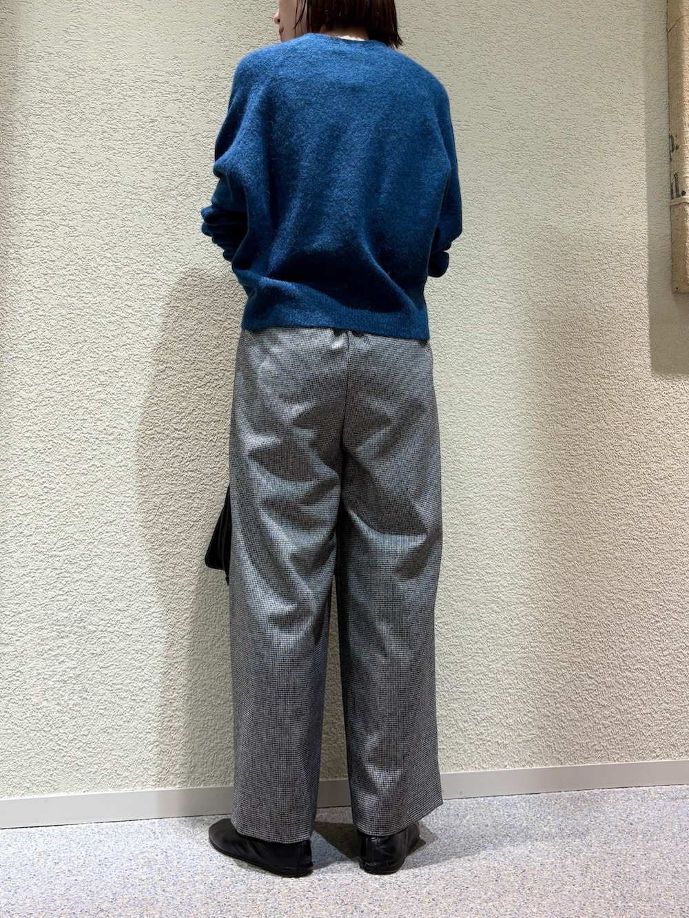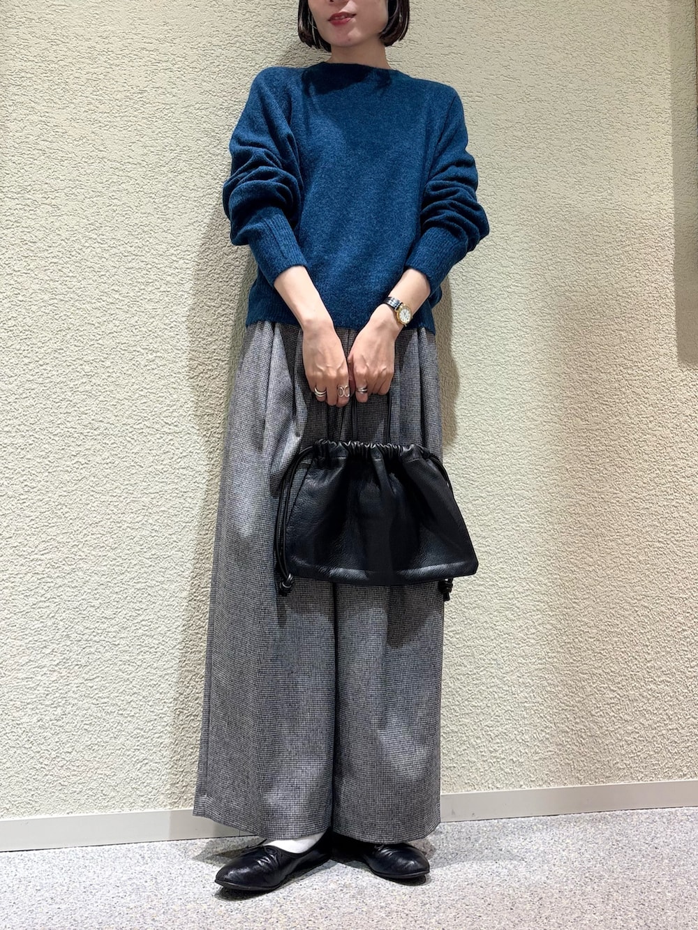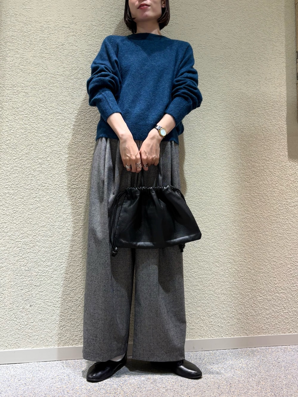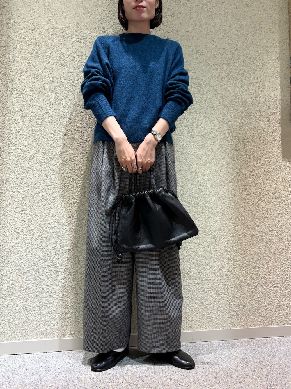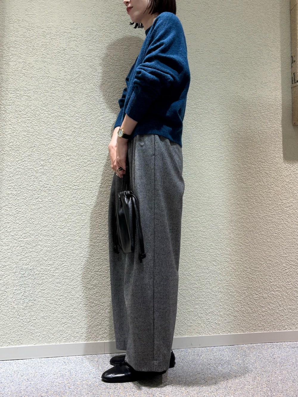 着丈はスッキリめなのでワイドパンツやスカートなど幅広いシルエットのボトムスと相性バッチリです。