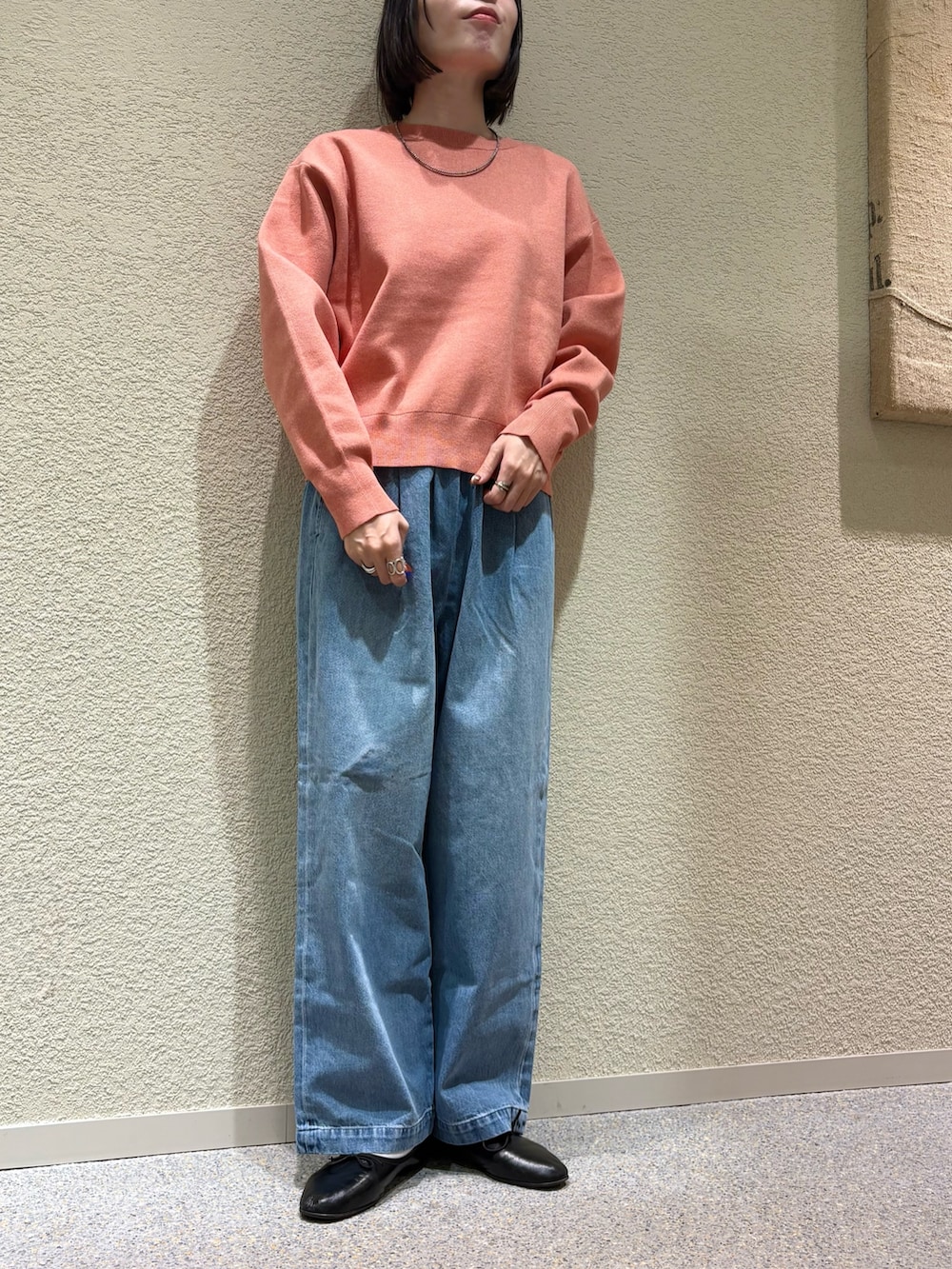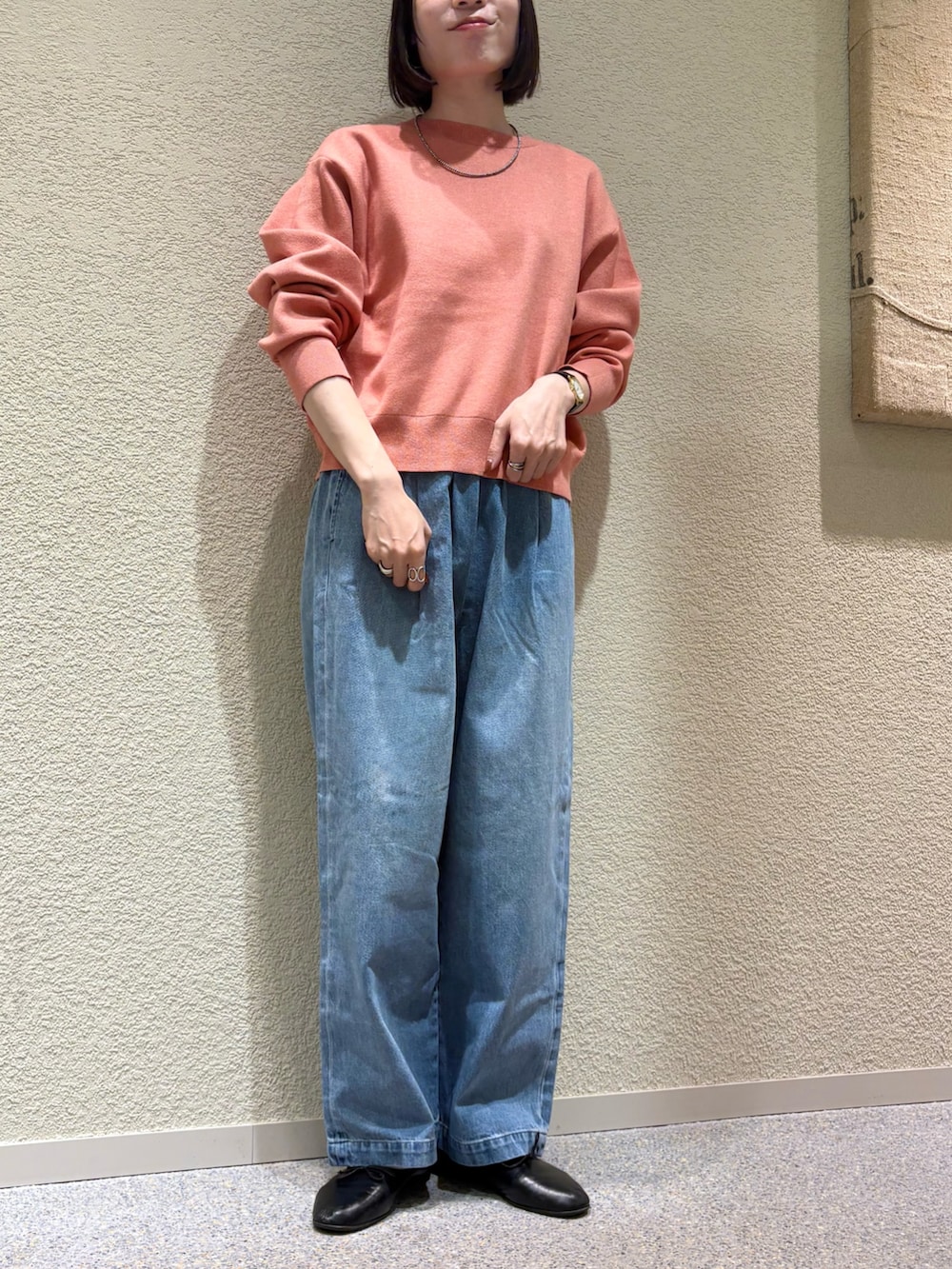 すっきりめの着丈なので、太めのシルエットのパンツや、スカートとも相性バッチリです◎