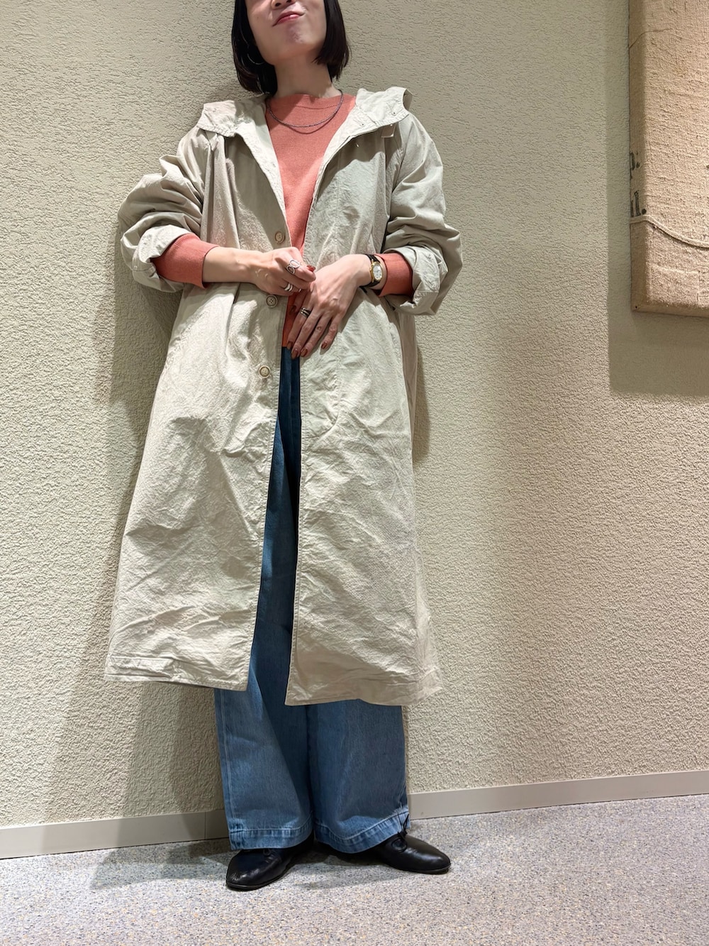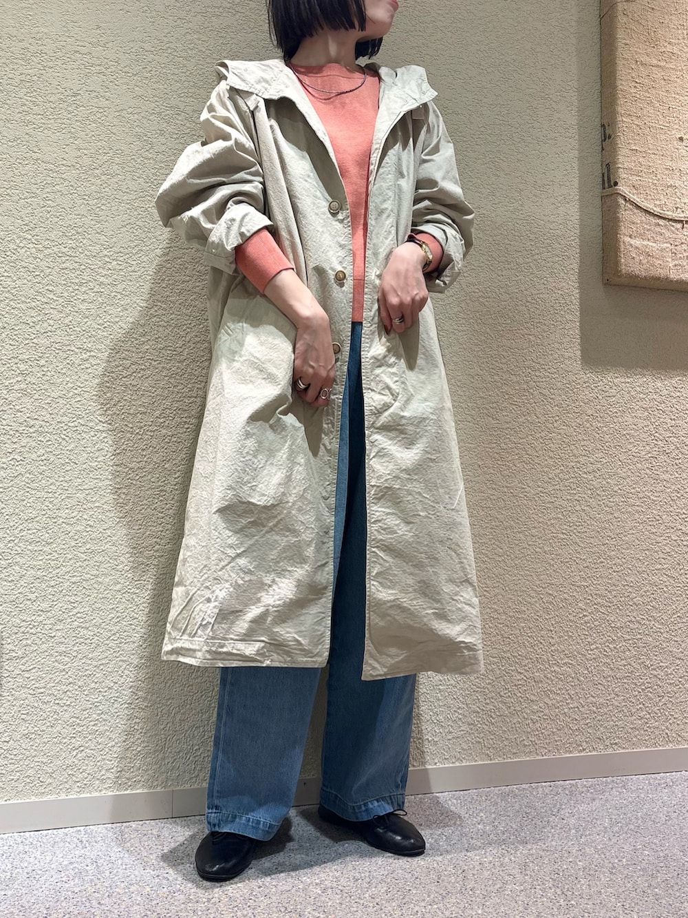 天然素材の風合いが素敵なコートです。
