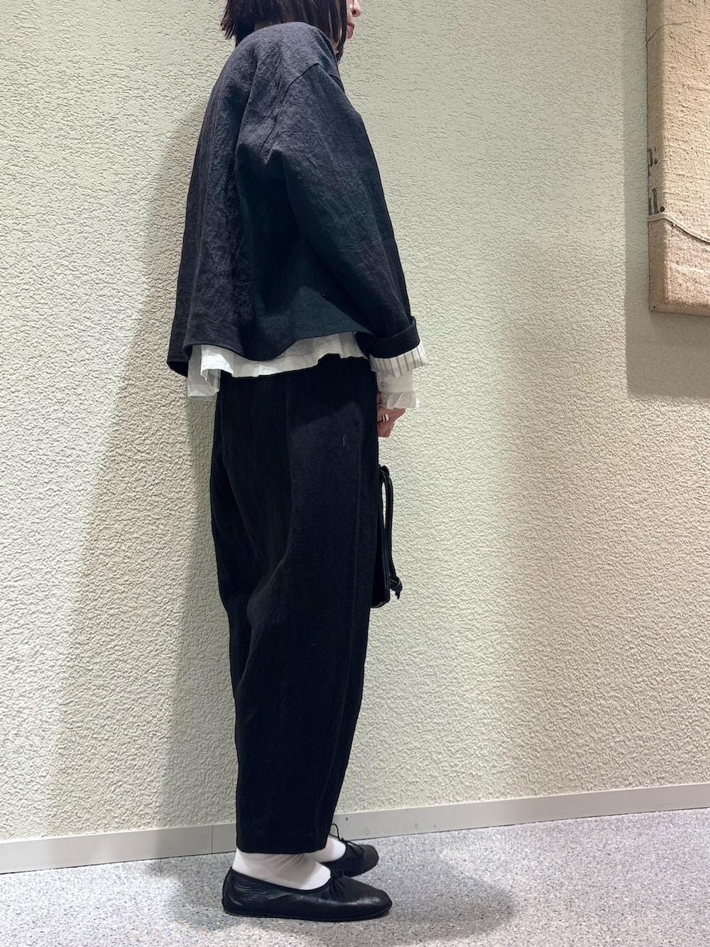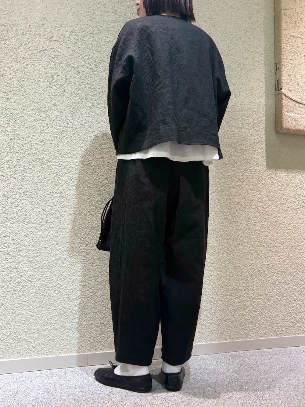 ジャケットと同じくリネンラミーの素材で、ナチュラルな風合いが特徴のパンツです。