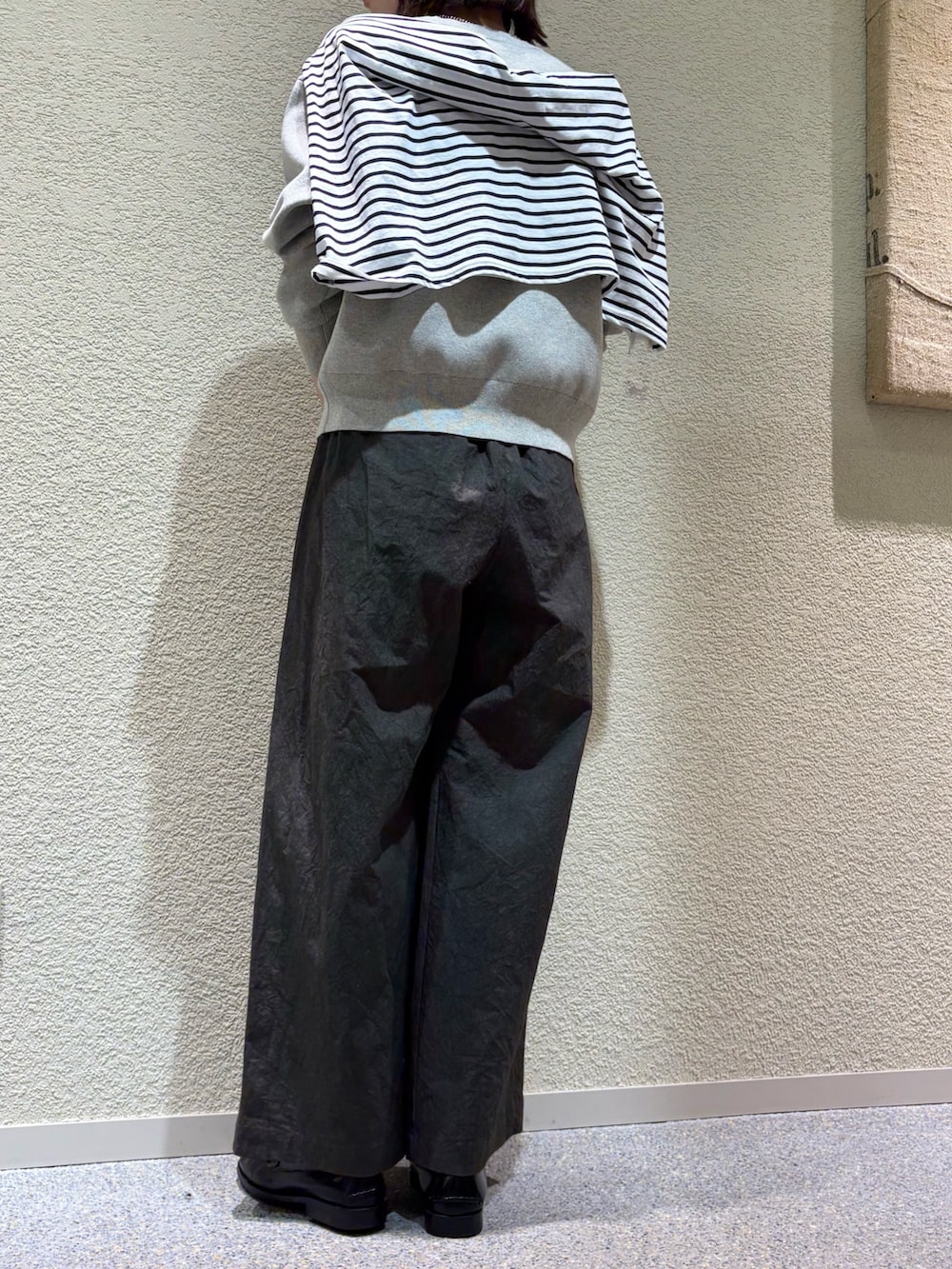 スウェットのようなラクな着心地ですが、見た目はカジュアルすぎず、シンプルでどんなスタイリングにもハマるデザインです。