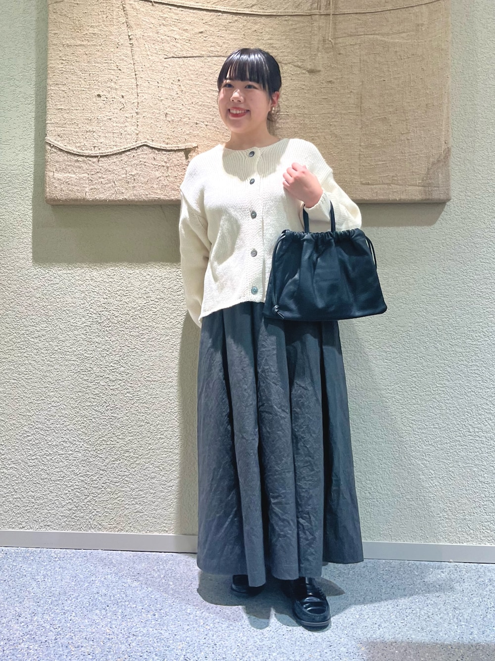 シンプルなデザインなので、シャツなどをレイヤードしたスタイリングも可愛くてオススメです。