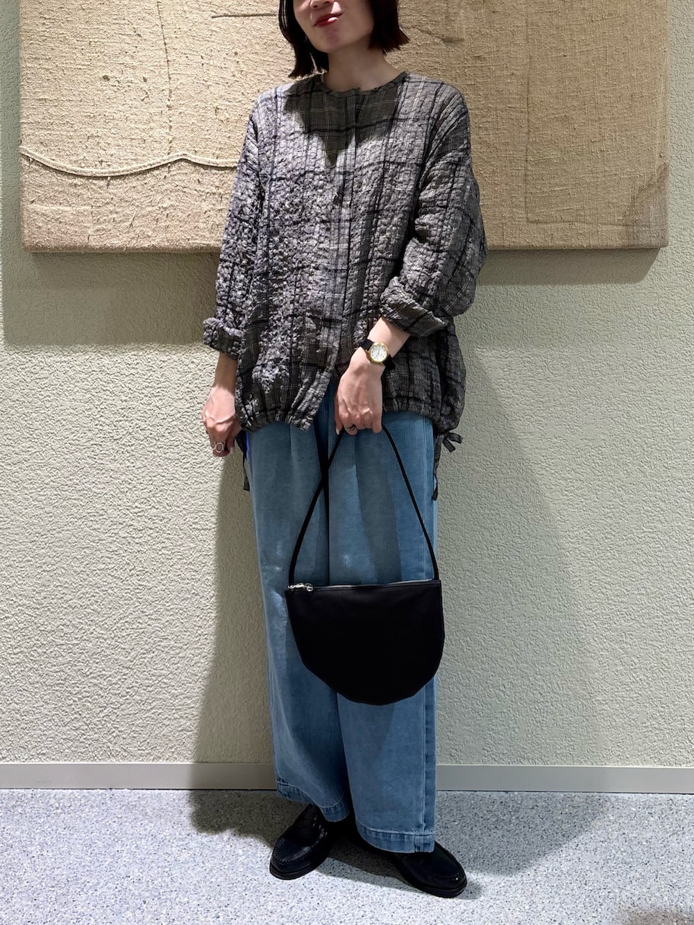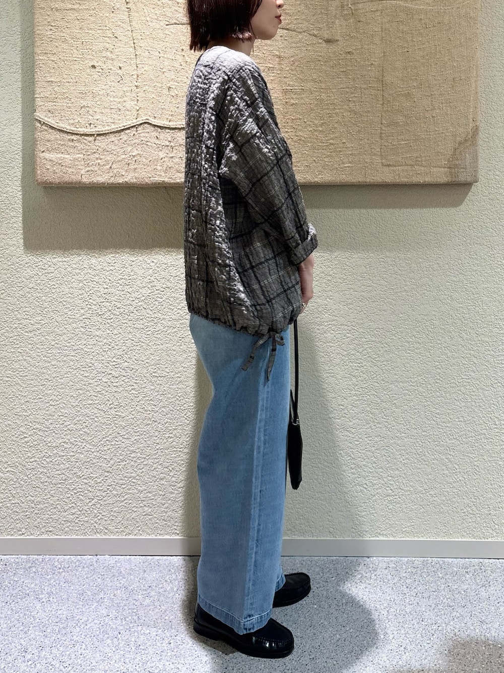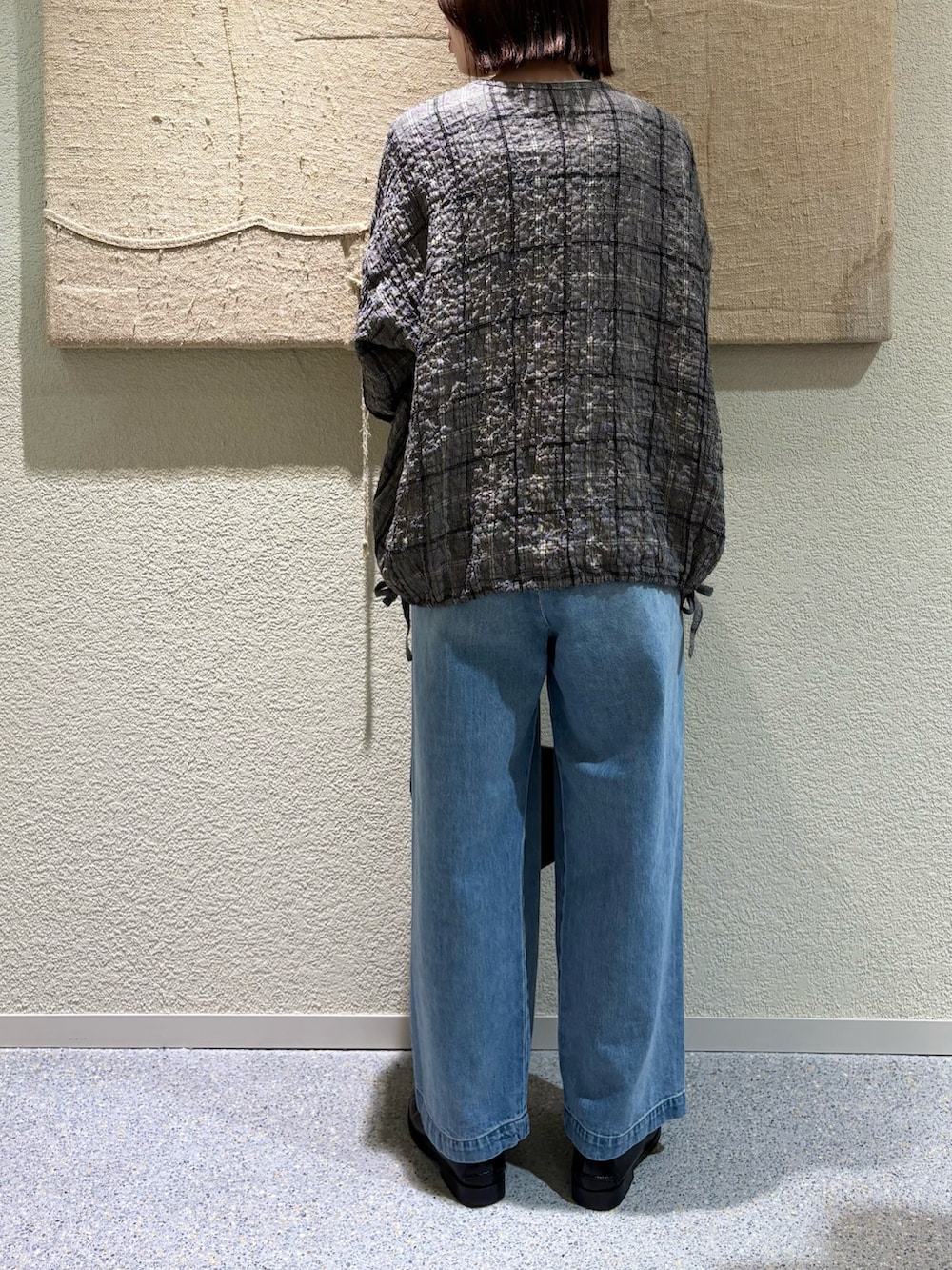 リネンとレーヨンでお作りしており、これから夏にかけて着やすい素材感です。