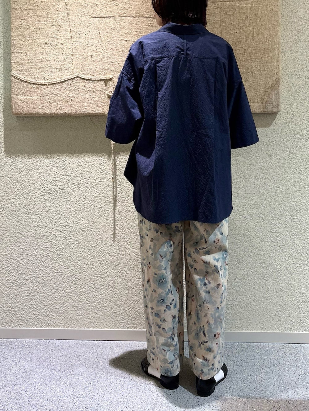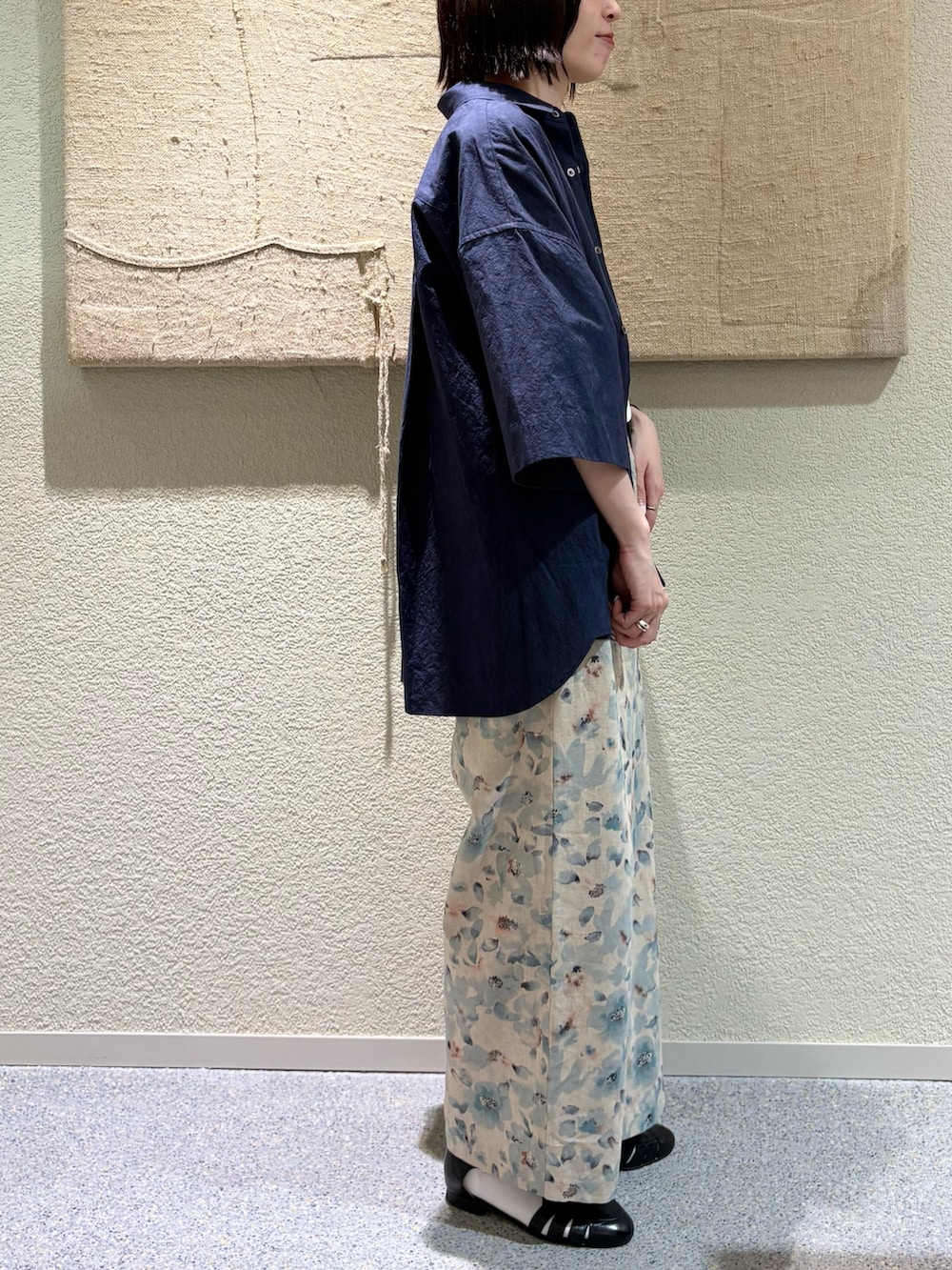 絵画のようなタッチの柄で、淡いトーンの配色なので派手すぎず柔らかい印象で着用頂けます。