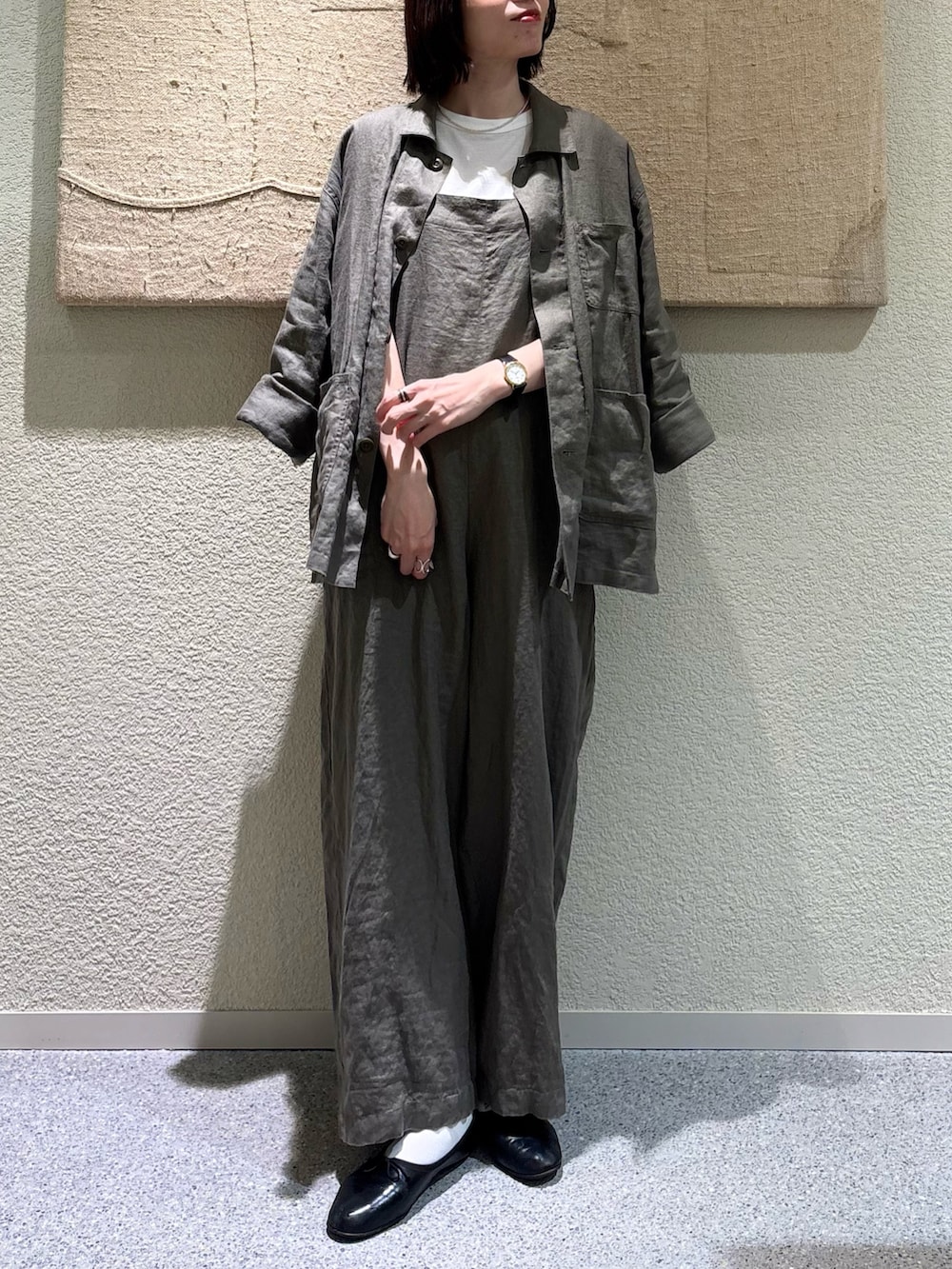 同素材のリネンカバーオールと合わせると洒落感が増した素敵なコーディネートができました^ ^