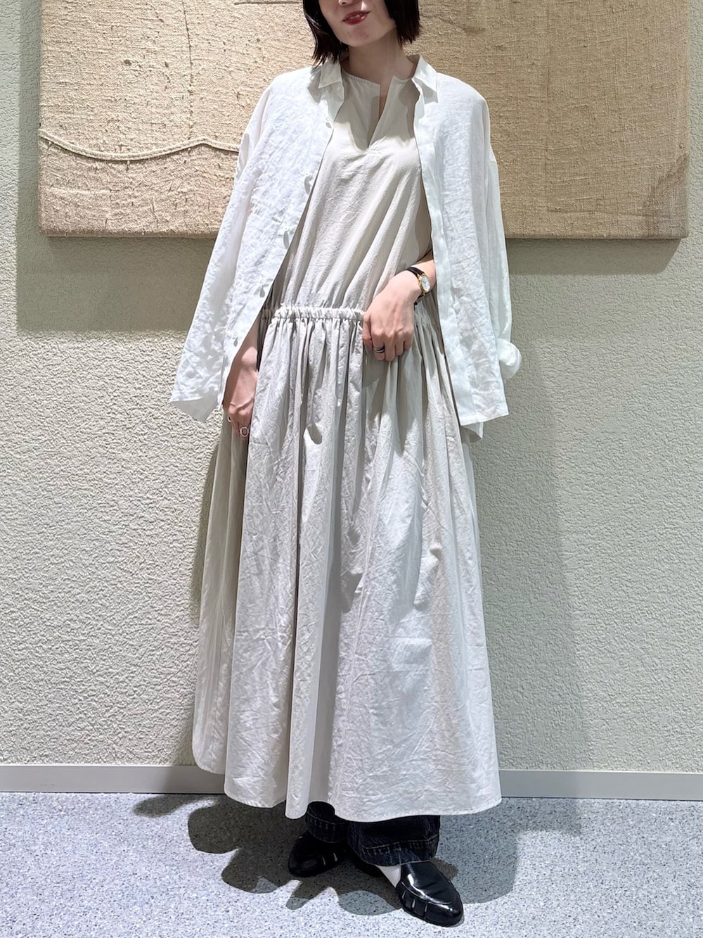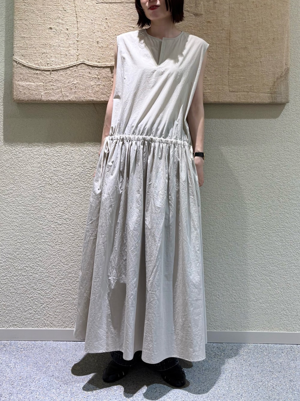 これからの季節にぴったりのワンピースで、近江晒加工で作られた生地感がとても素敵です。