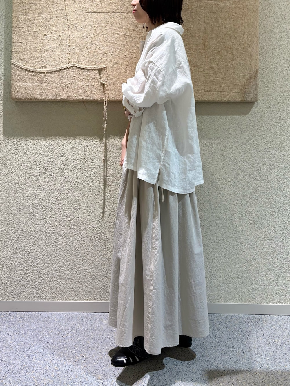 程良くハリはありつつも軽くてさらっと着れる素材感です。