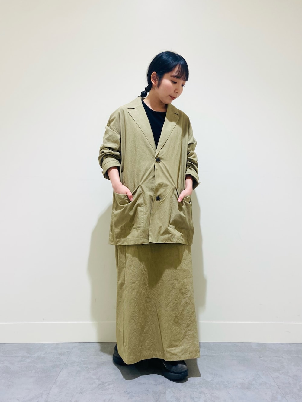 細めのシルエットでありながら、身体のラインはひろわないのも嬉しいポイントです!