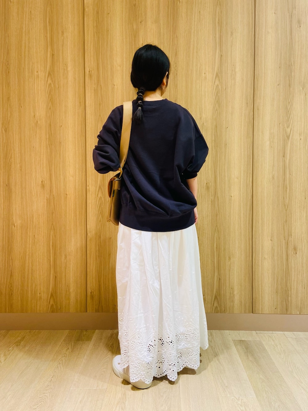 ナチュラルなアイテムとはもちろん、今回のスウェットのようにカジュアルなアイテムと合わせるのもかわいいです!