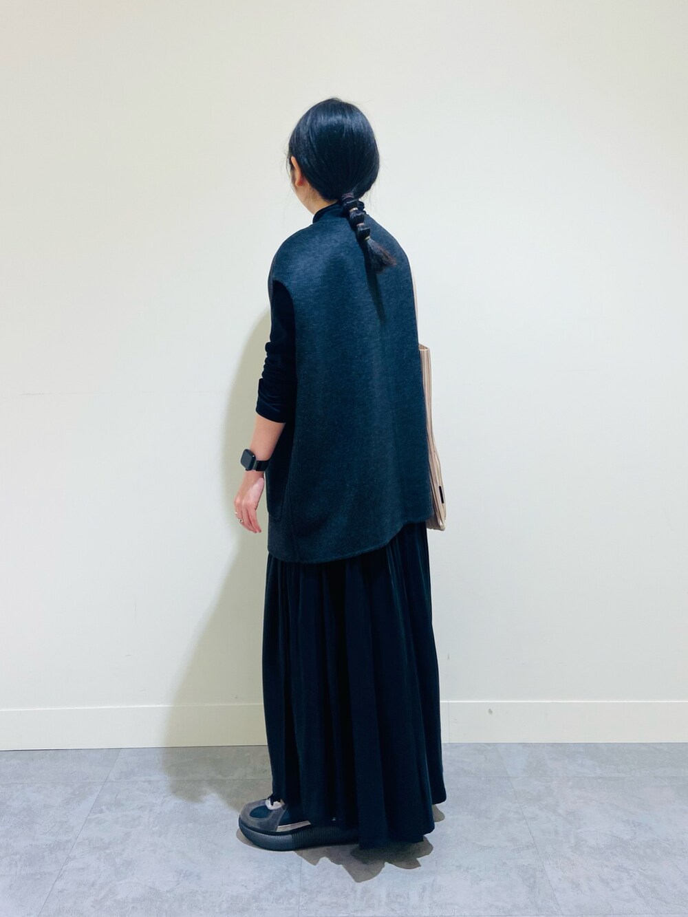 もっと季節が進んだ際には、さらにお袖付きのアウターを重ねても◎