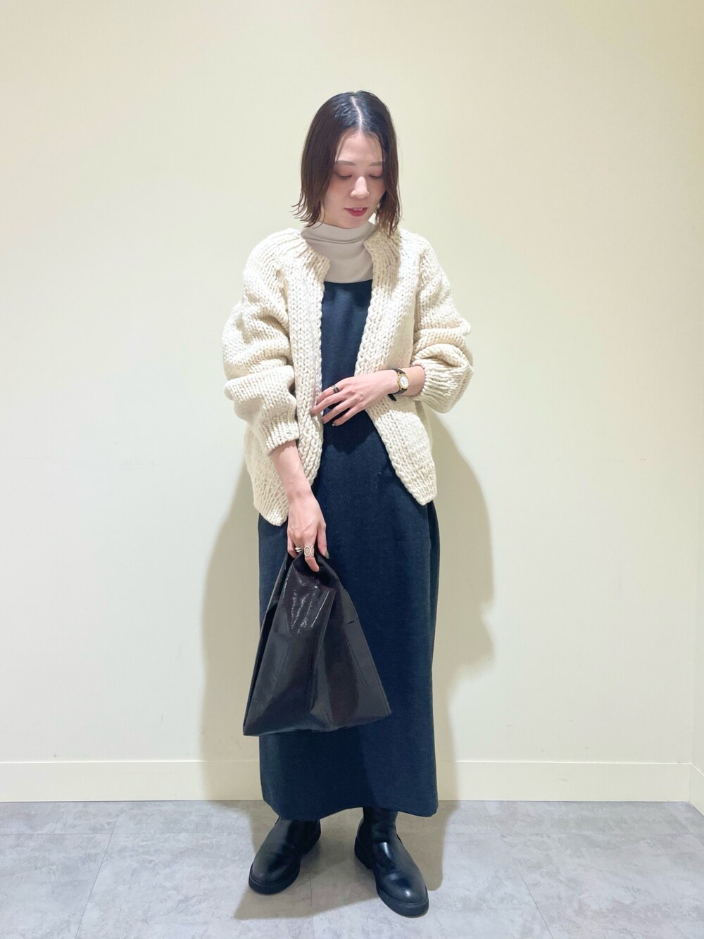 ざっくりと手編みされているカーディガンで、とても暖かみのあるアイテムです◎アウター感覚で着れるデザインで、ボタンレスなのでさっと羽織れる仕様です。色んなアイテムとバランスよく合わせられるシルエットです!