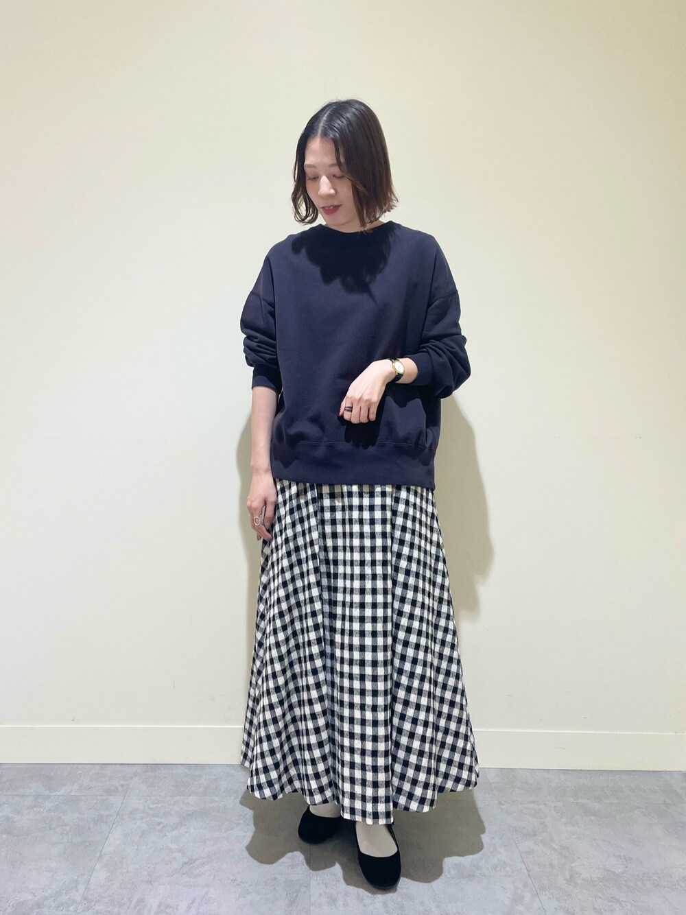 大人っぽい落ち着いた色合いのチェック柄のスカートです。ウールとコットン、リネンが混合した生地で、軽い着心地ですが暖かさもしっかりあります◎ウエストはゴム仕様なのでストレスフリーです。柔らかなフレアシルエットなので、上に合わせるトップスはゆったりしたニットやスウェットでも、スッキリしたカットソーなどをインするスタイルでも、どちらでもバランスよく着こなせます!