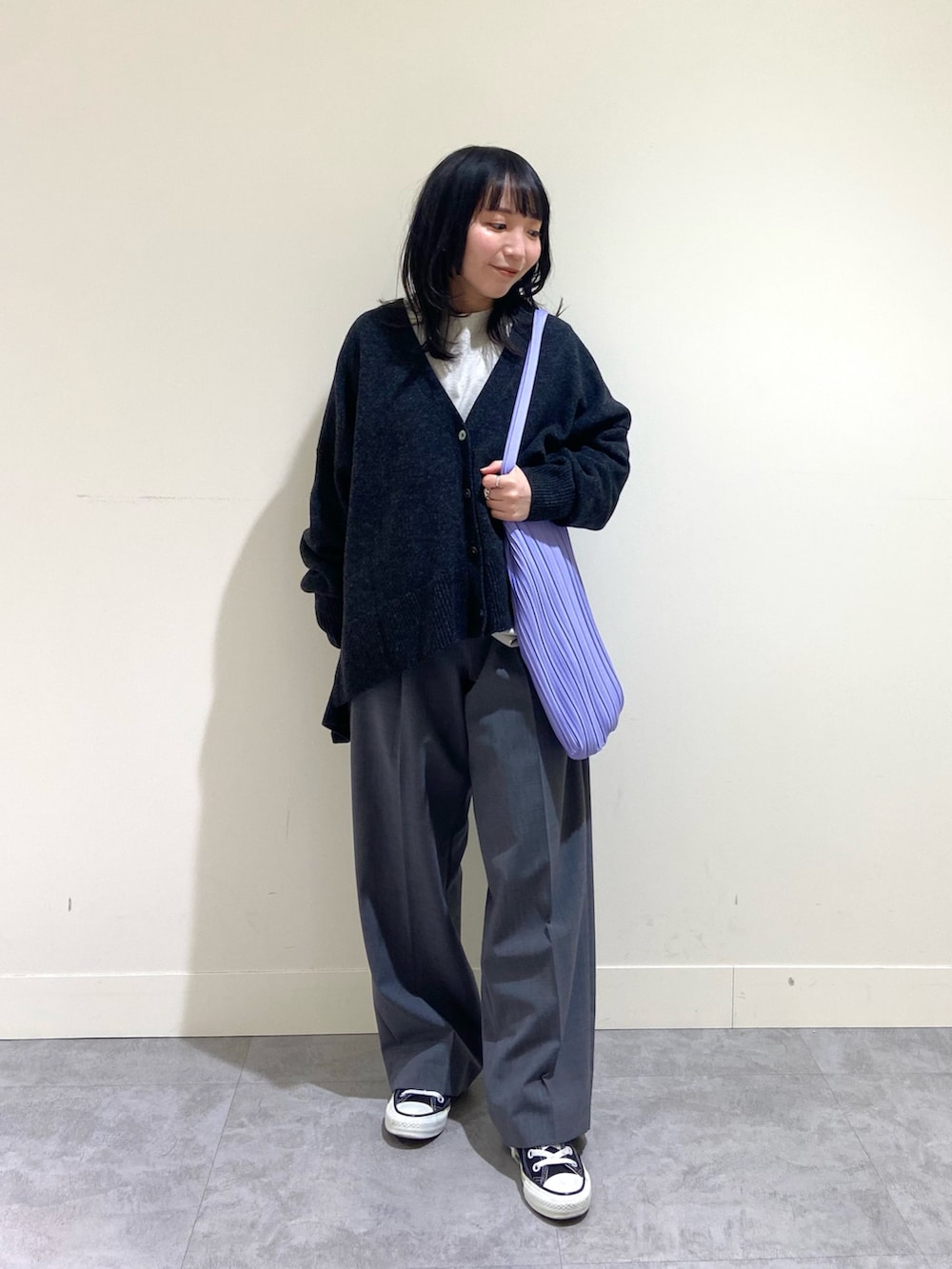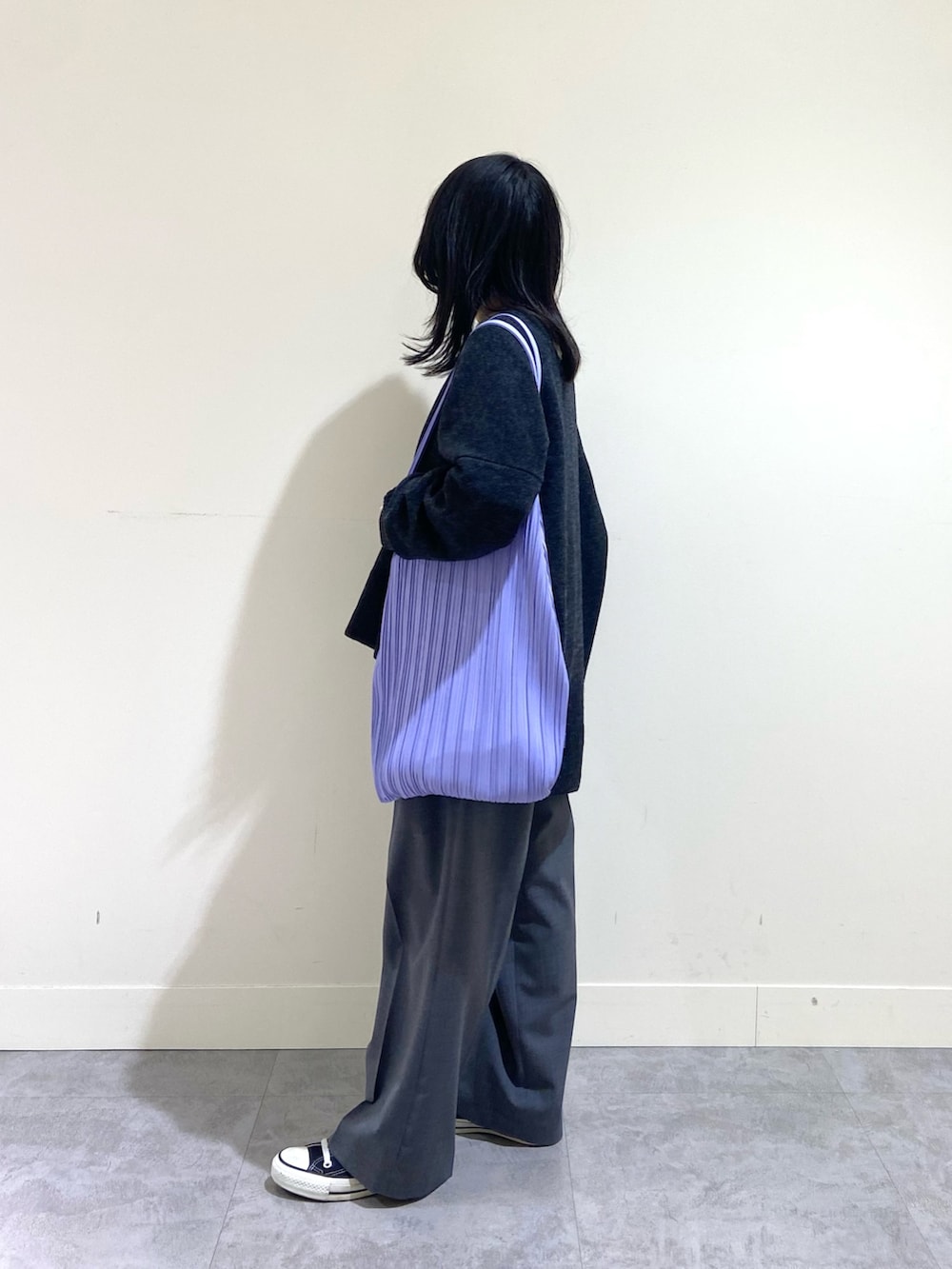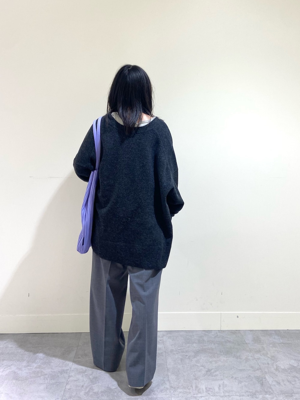 ワイドなシルエットではありますが、両脇にスリットが入っているので小柄さんでもバランスが取りやすいかなと◎