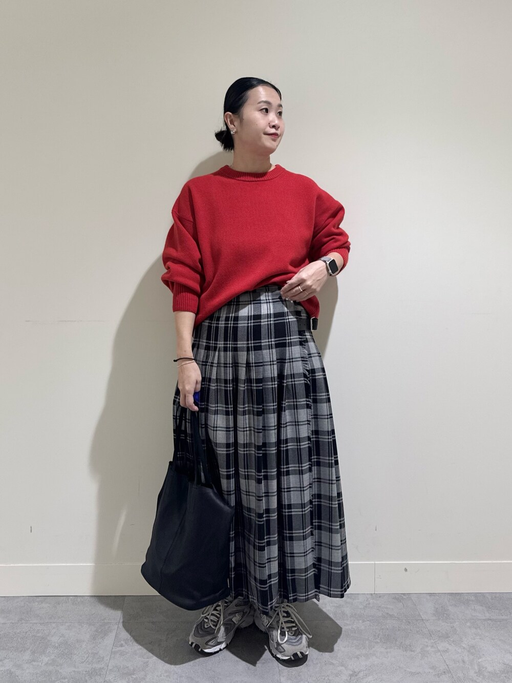 赤を取り入れたスタイリングを