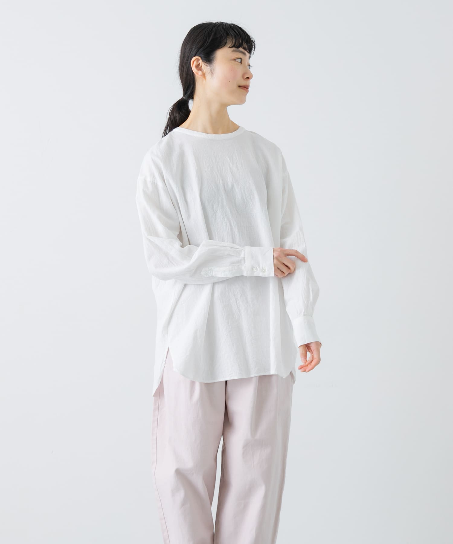 コットンリネンクルーネックシャツ