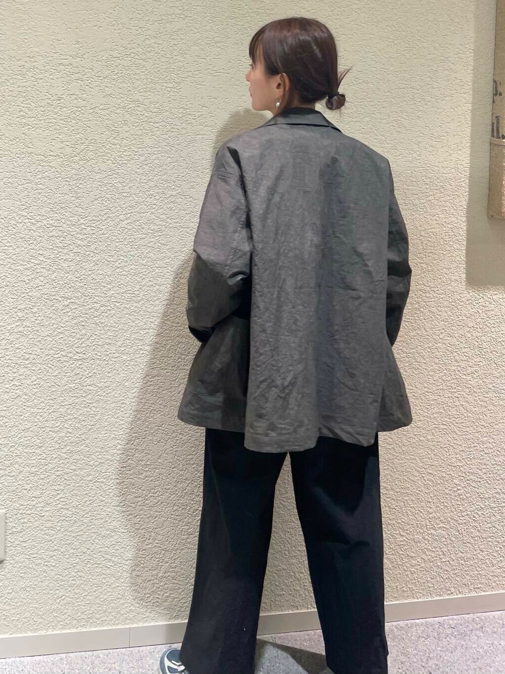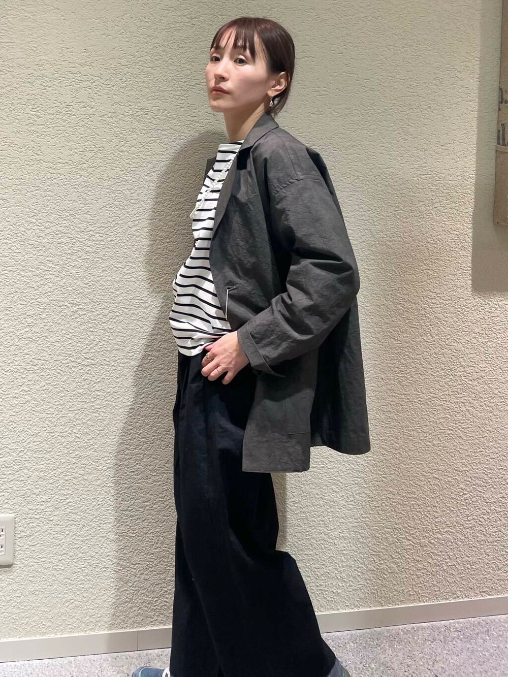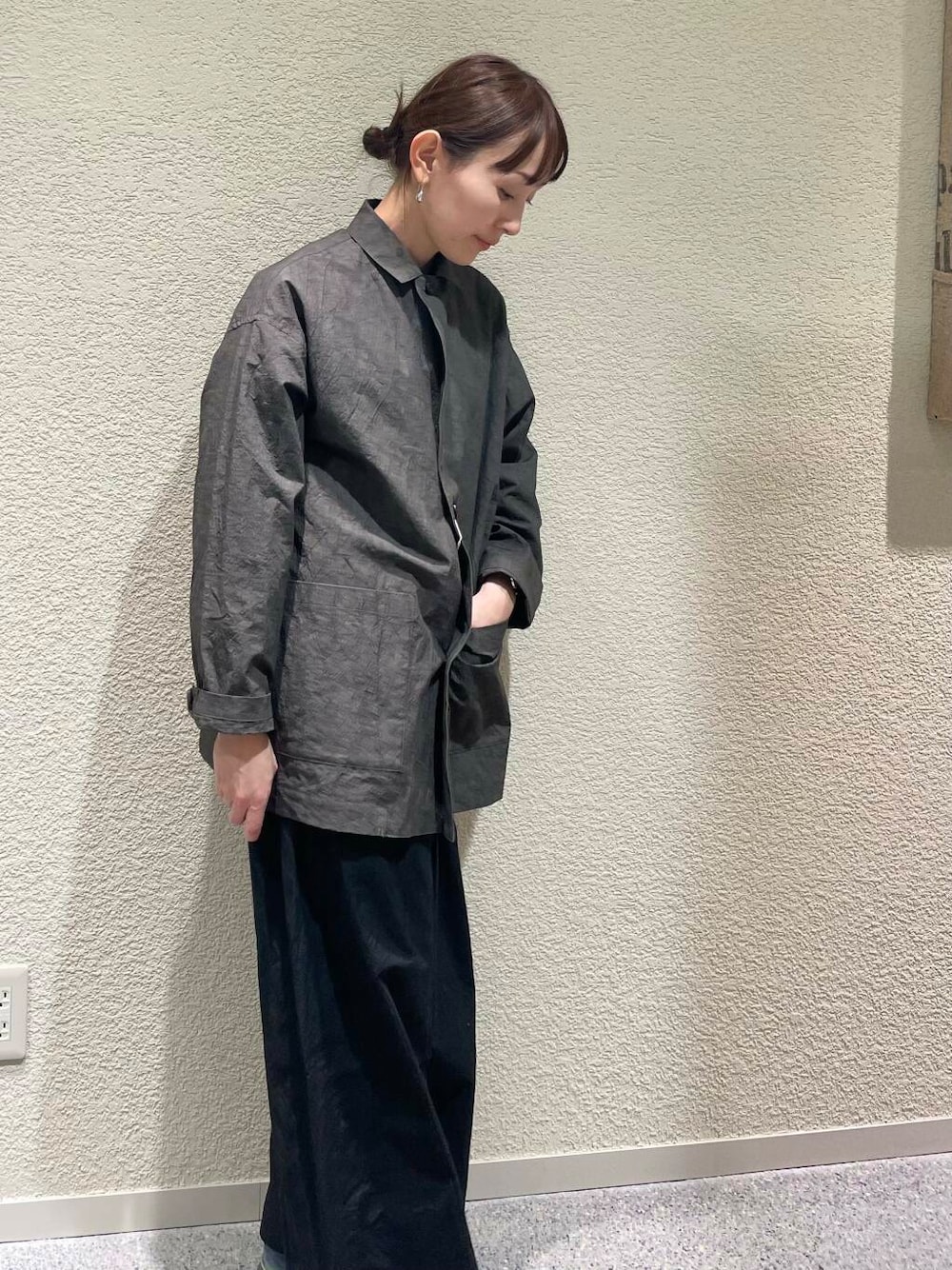 大好評いただいている、遠州染めのコットンテーラードジャケットを私オススメのステンカラーの様にして着てみました。