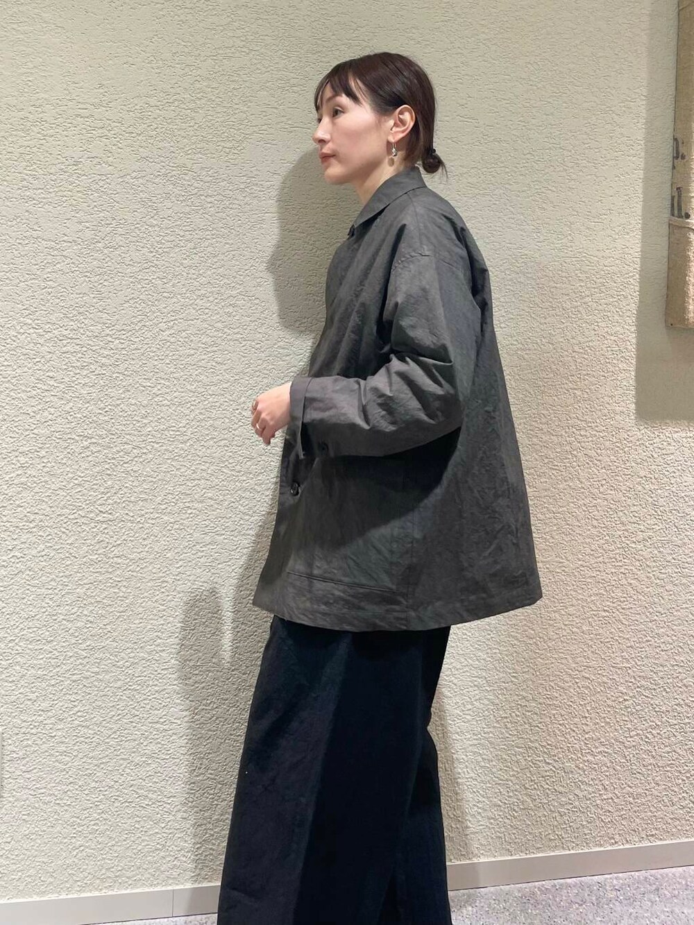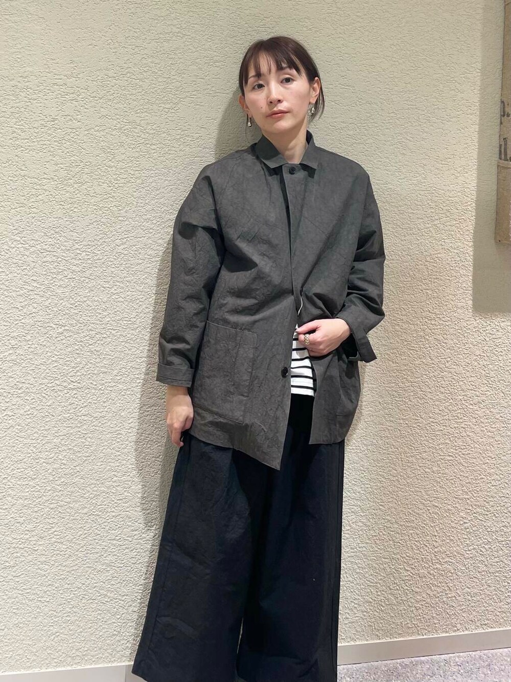 上までボタンをとめていただくと、テーラードカラーからステンカラーに変わってまた違う雰囲気で、シャツトップスの様にも着て頂けます○