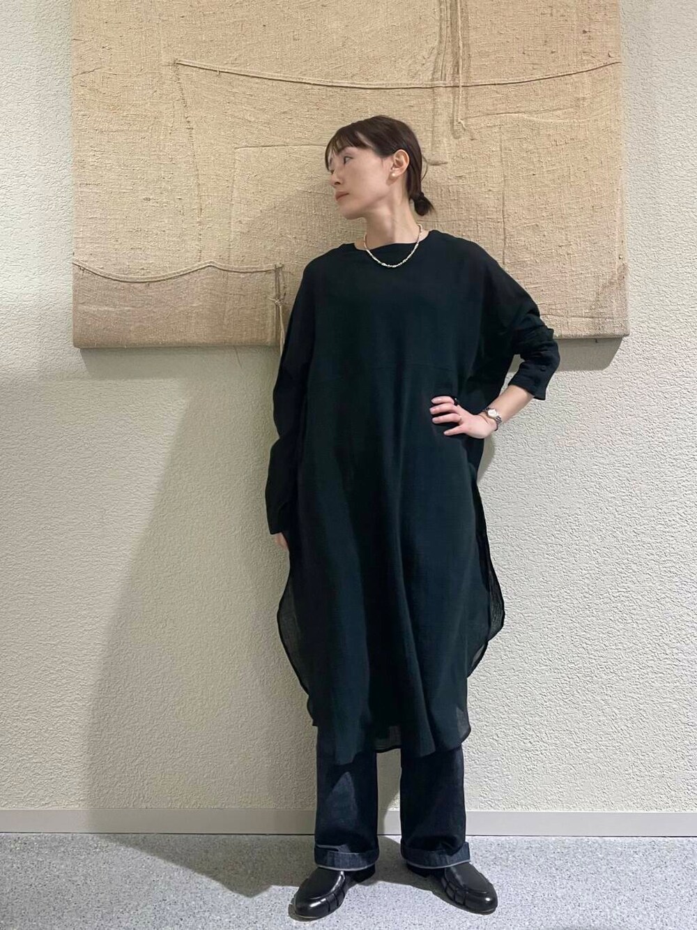 ガーゼロングチュニックのBLACKを作って、ダークトーンでカッコいいスタイルに😎