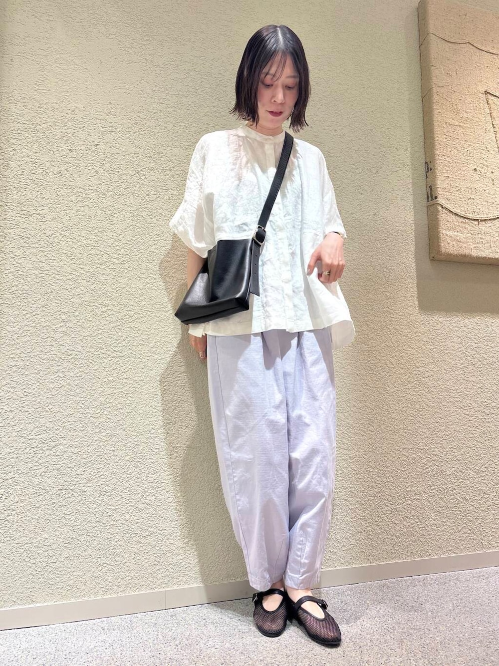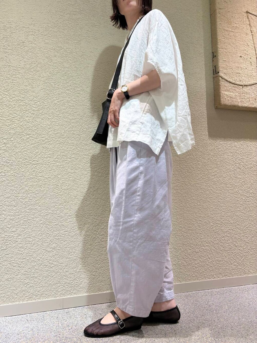 これからの時期はサンダルやバレエシューズなど足の甲が見えるデザインの靴と合わせると抜け感が出て高身長の方でもバランス良く合わせていただける丈です。