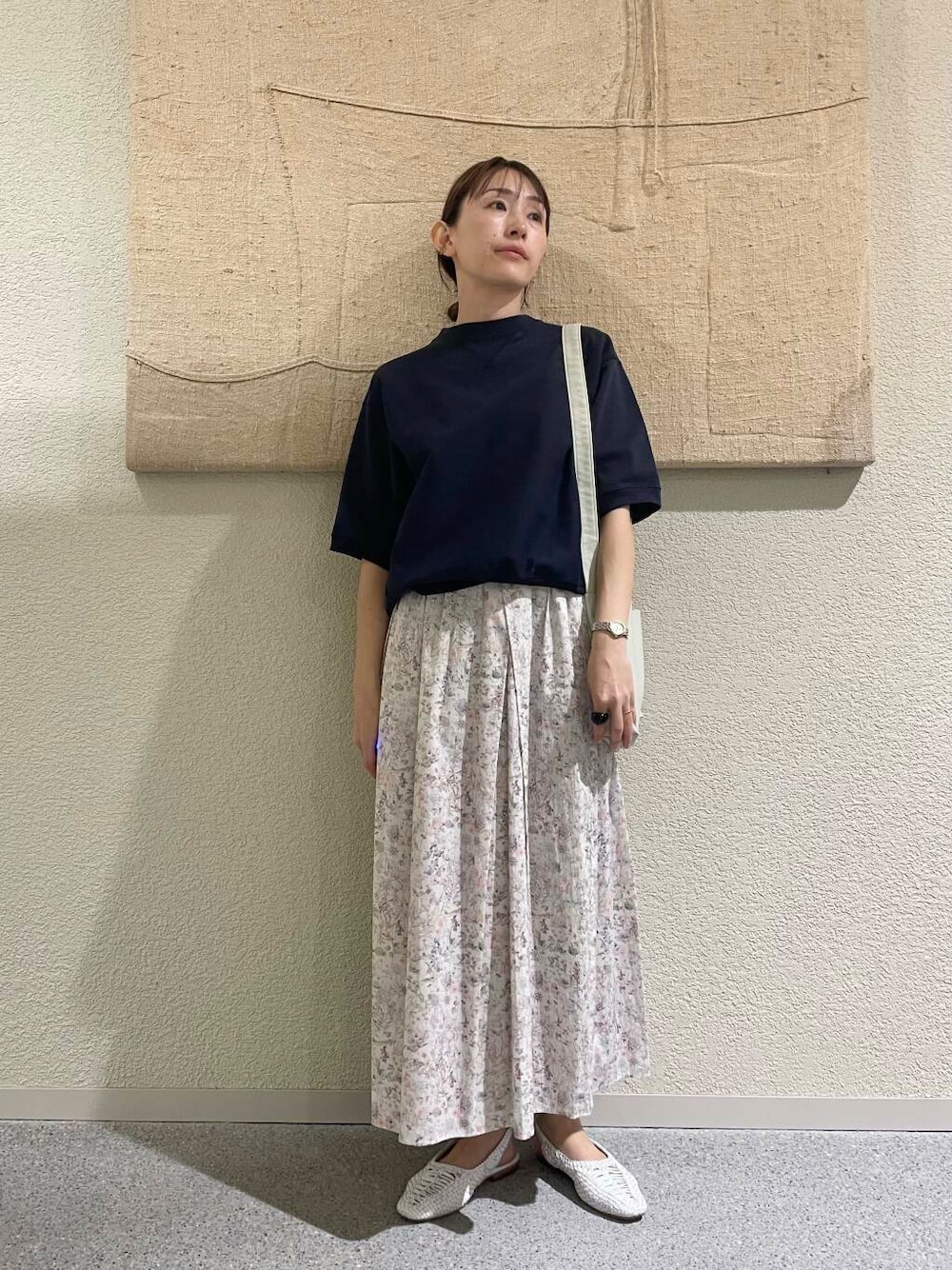 繊細なタックがとても綺麗で、動きを出しても広がりすぎない形、低身長でも着やすい丈感がこれからの季節も爽やかで最高です🙌