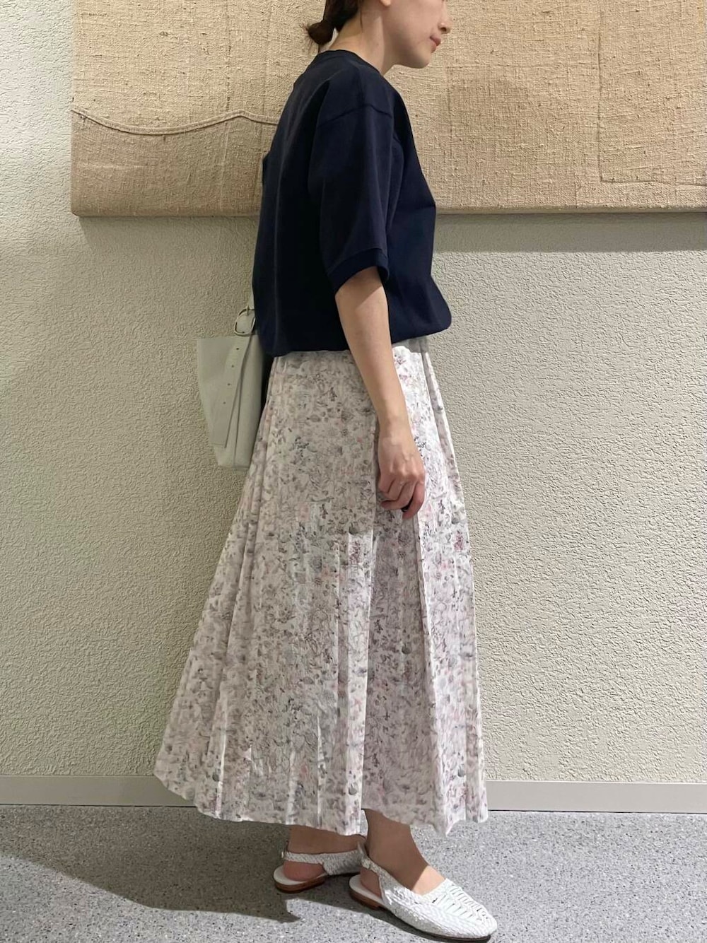 推しのリバティプリントスカートのWildFlowerを夏仕様のカジュアルコーデにしました。
