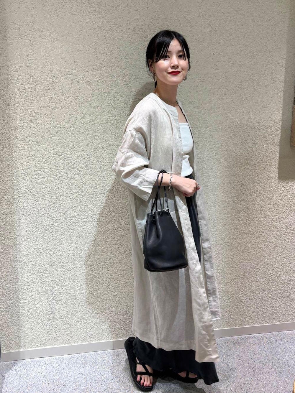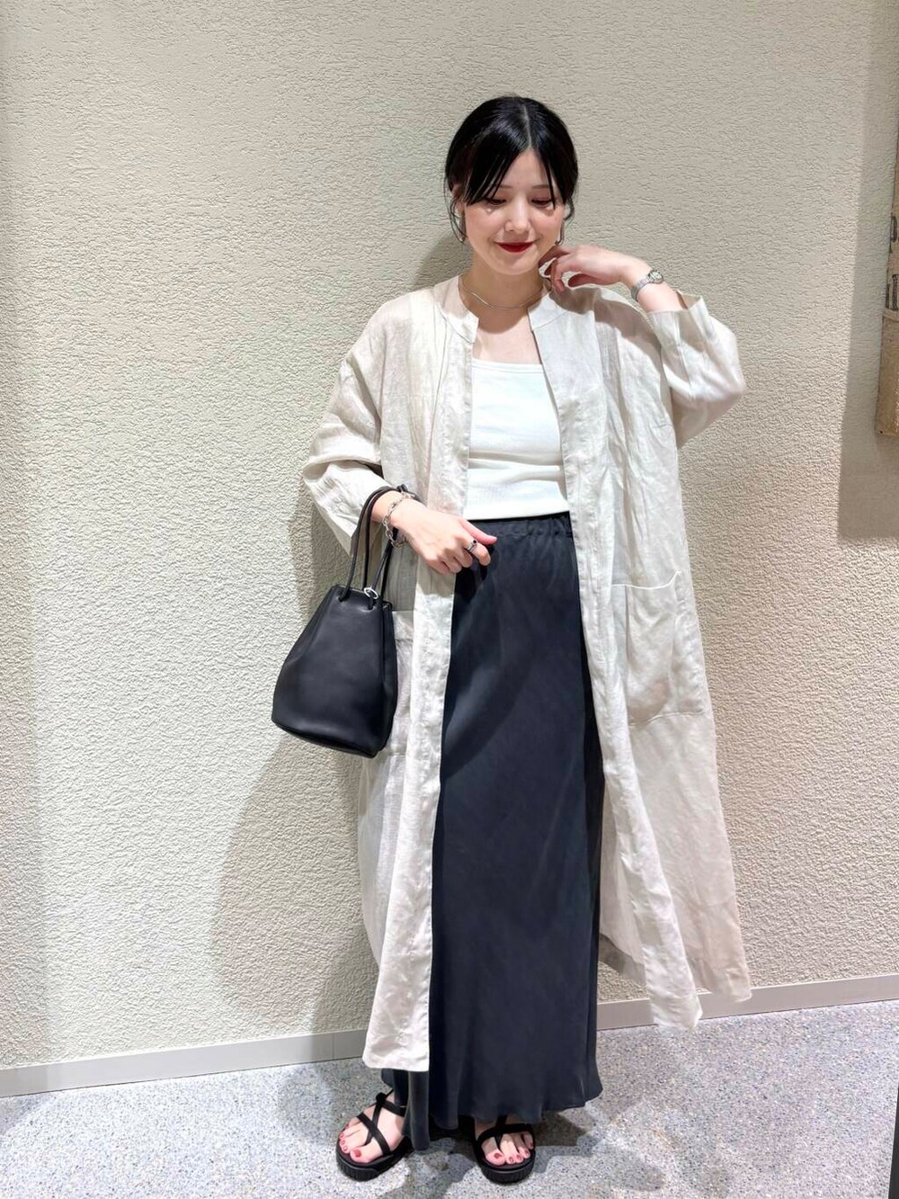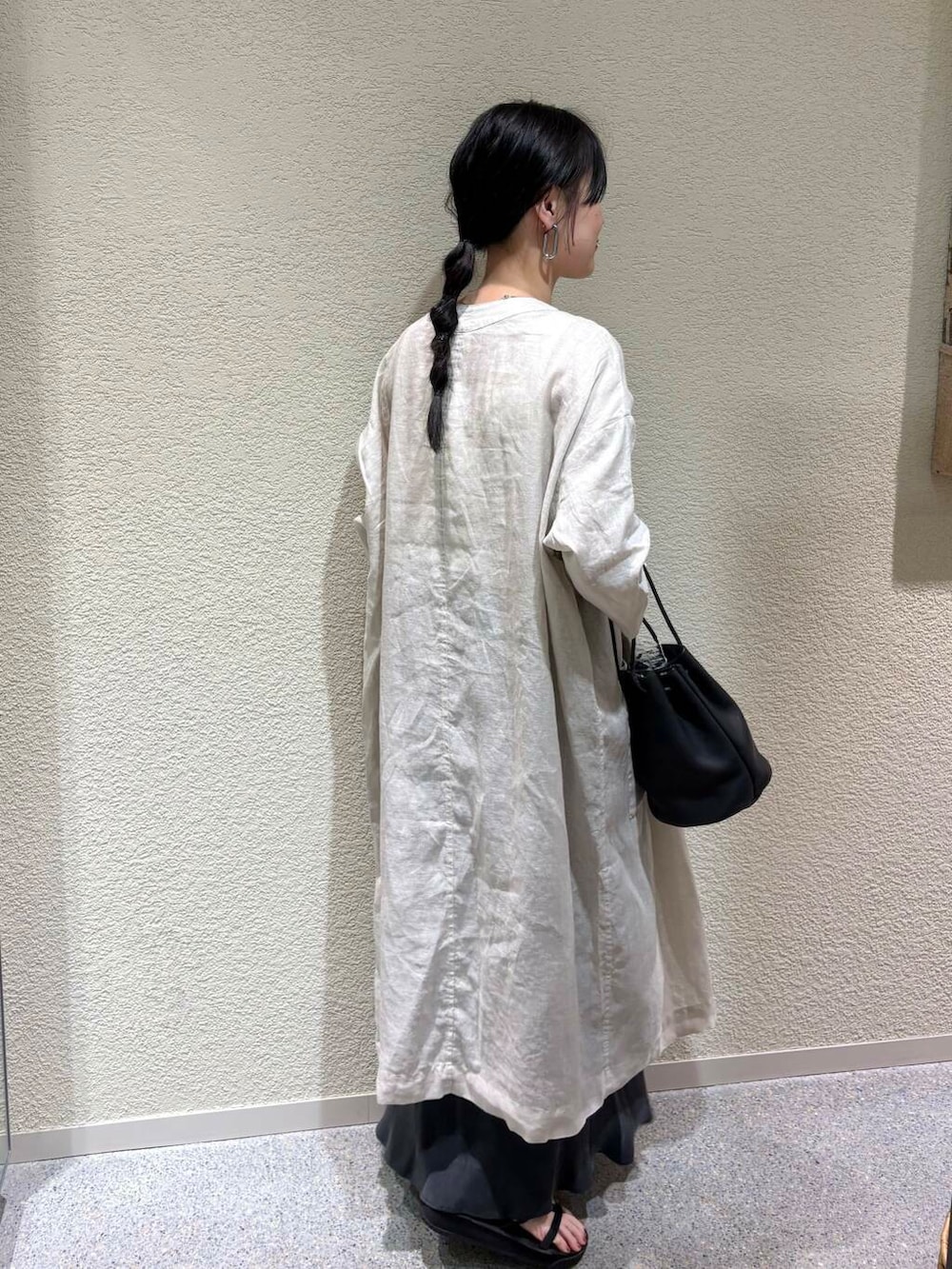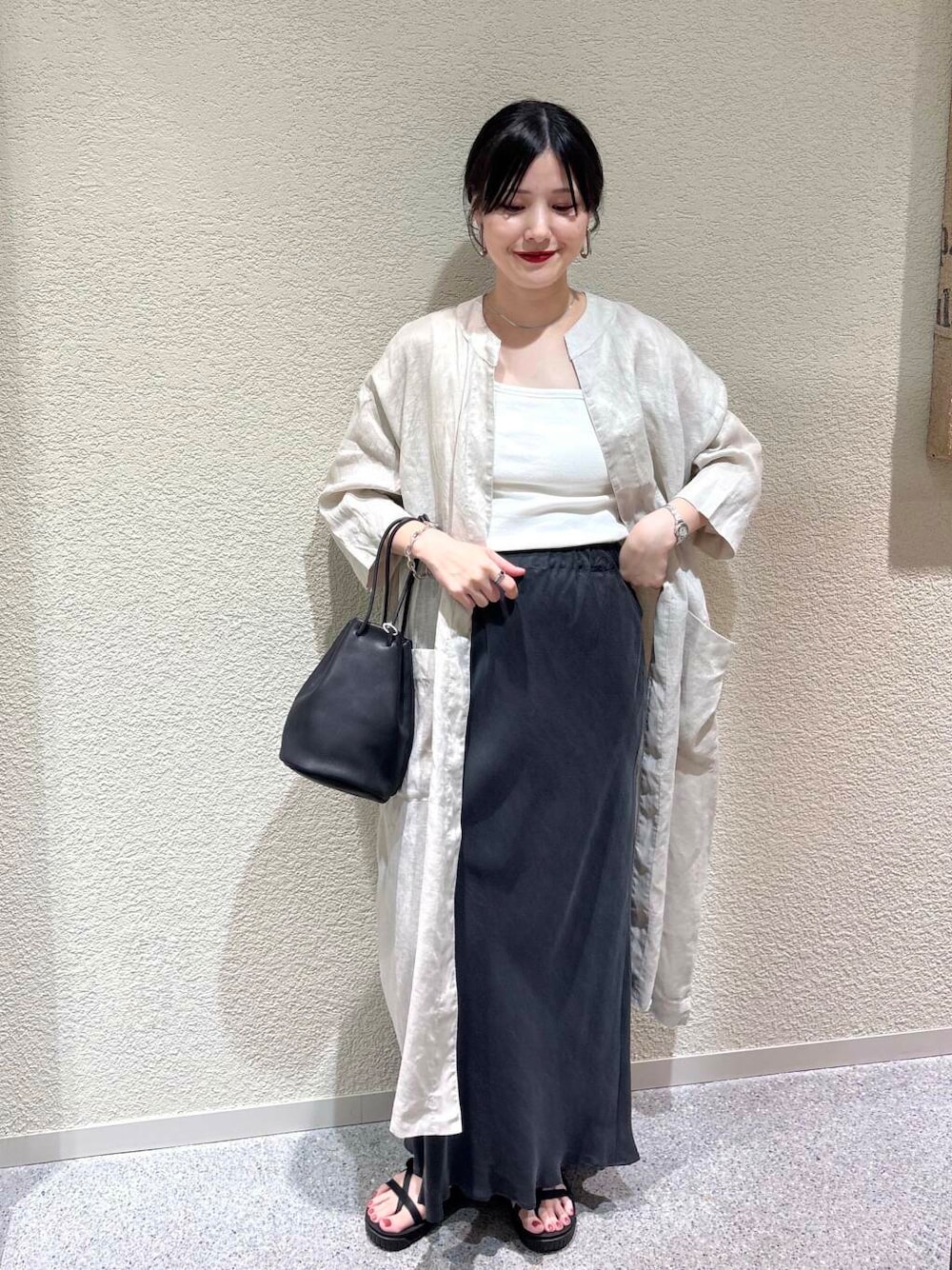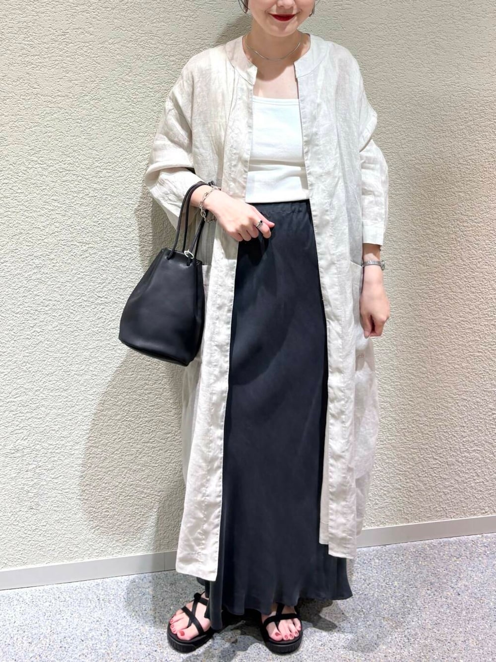 ひざ下あたりまでの程よい丈感で、動きに合わせてゆらめく涼しげな印象をプラスしてくれます。リネン特有の通気性と軽さで真夏も快適に。