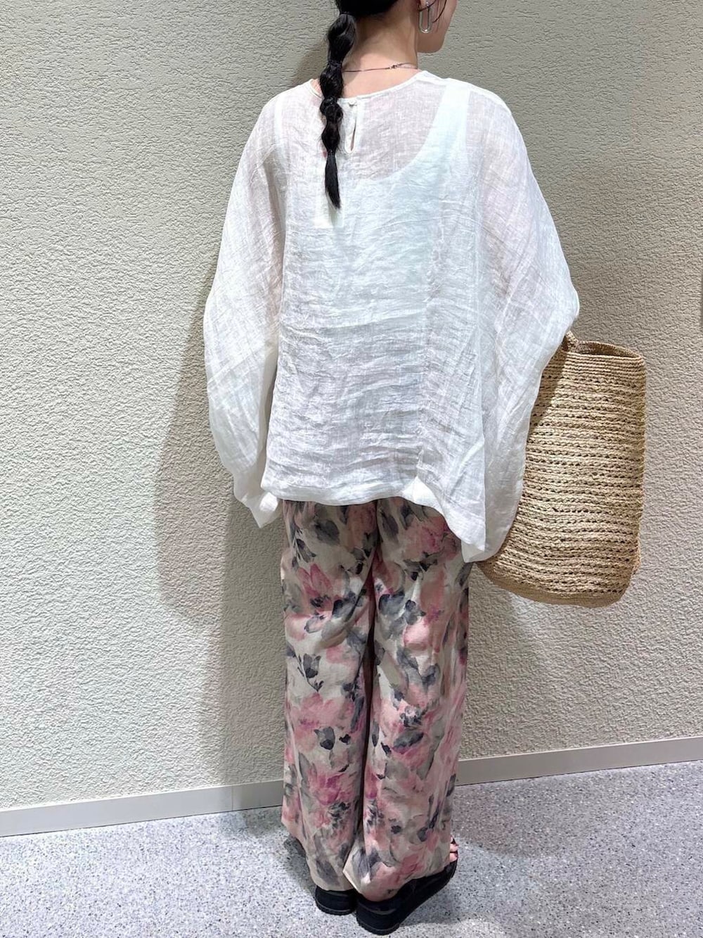 リネン混ならではの自然な風合いと軽やかさで、真夏でも涼しく快適に。ストンと落ちるストレートシルエットで、柄アイテムながら大人っぽくまとまります。