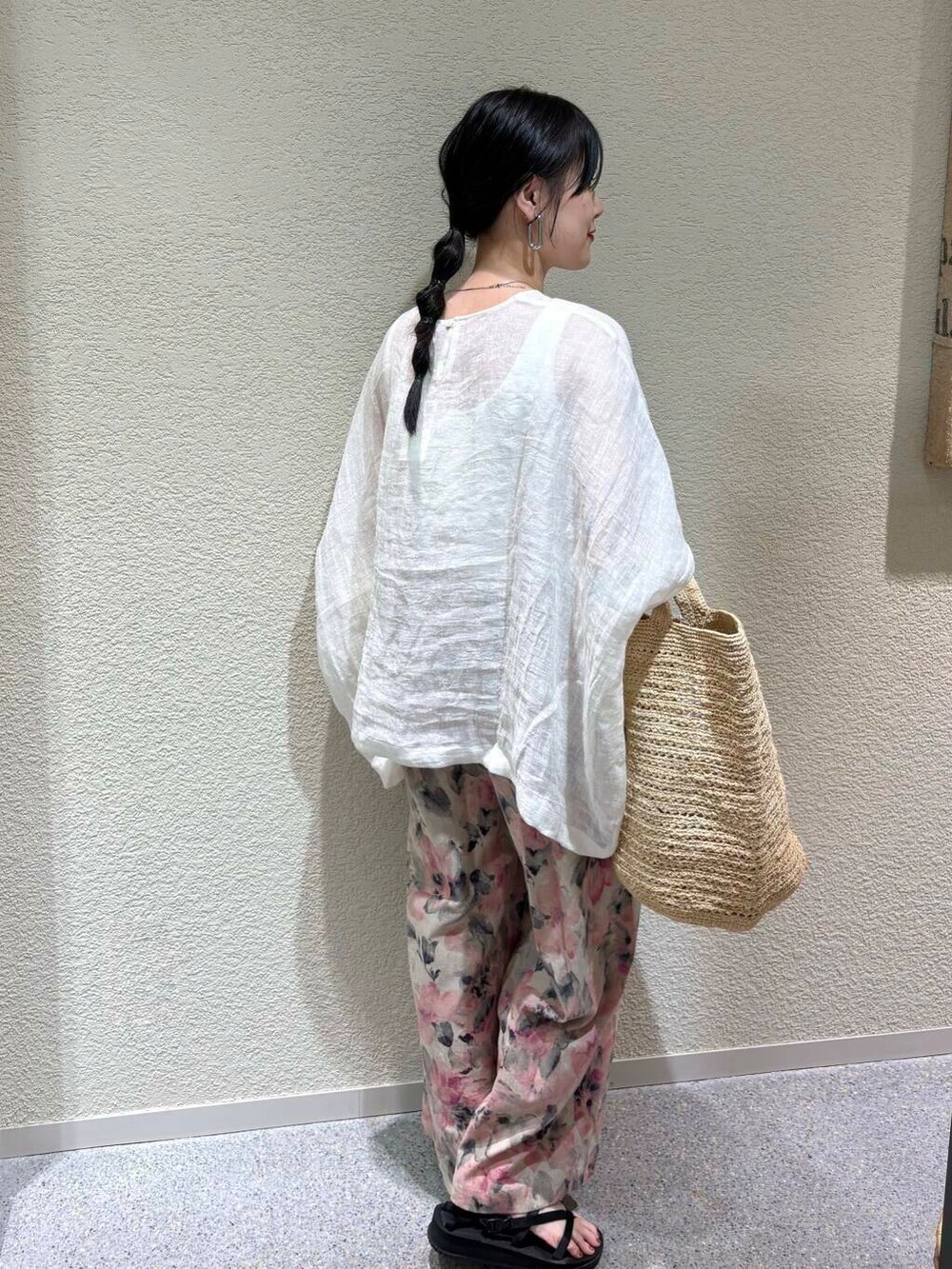 生地はほんのり透け感があり、インナーとのレイヤードを楽しめます。身幅にもゆとりがあり、風をはらんでふわっと動くたびにナチュラルな抜け感が漂います。