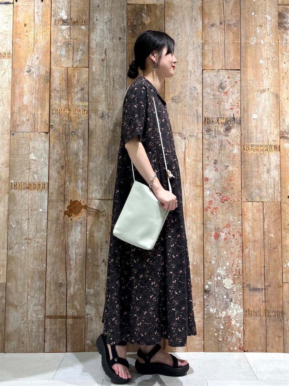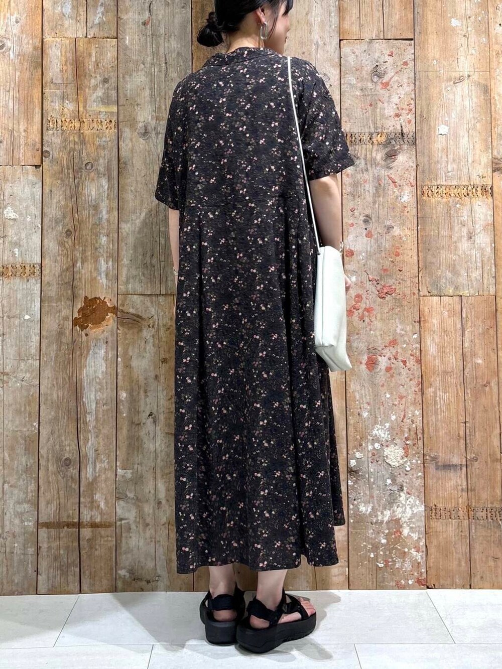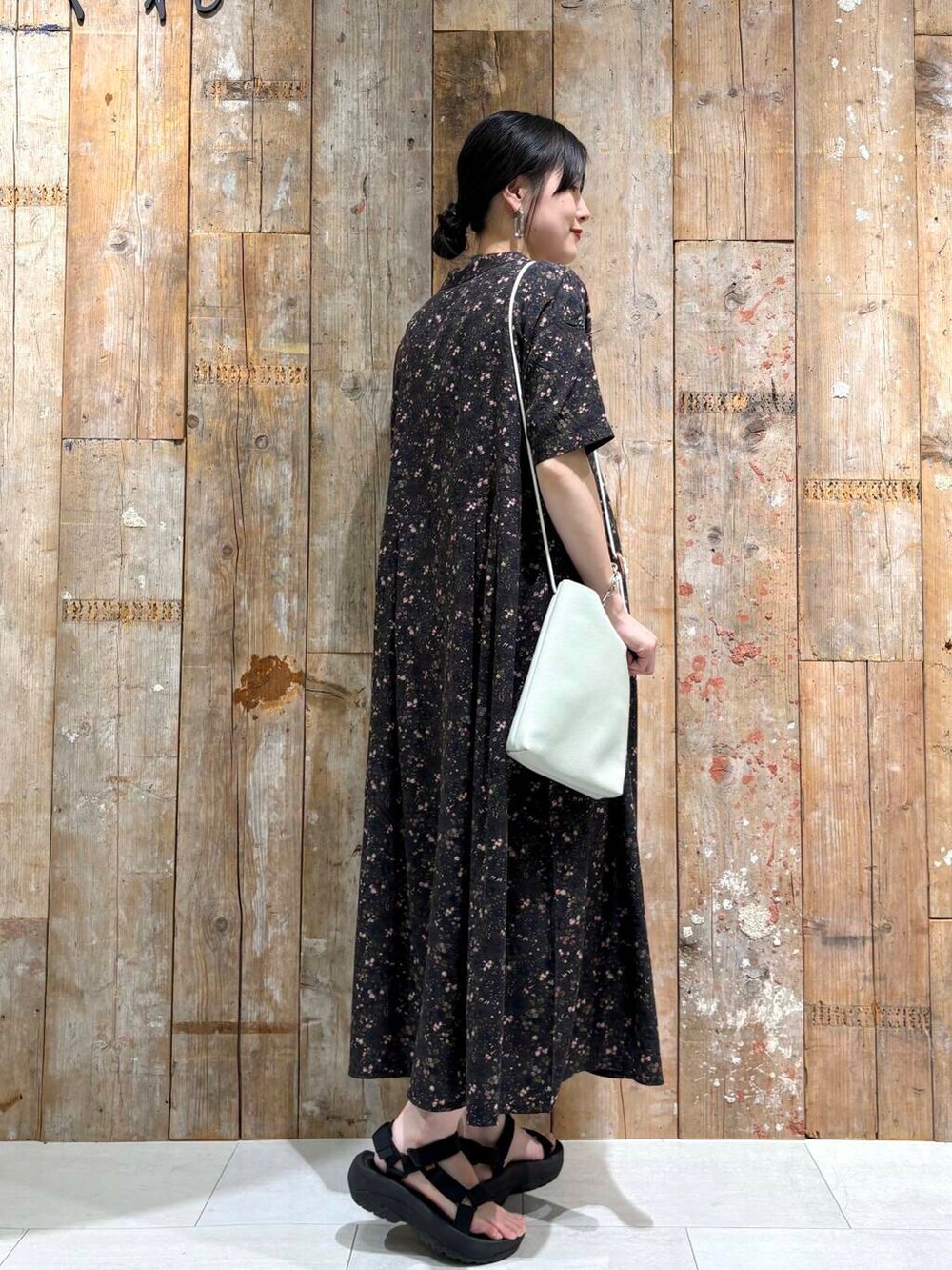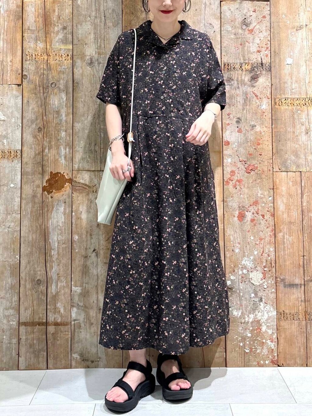 足元は黒のフラットサンダルで、ワンピースの甘さを引き締めて。デイリーにもお出かけにも活躍します。