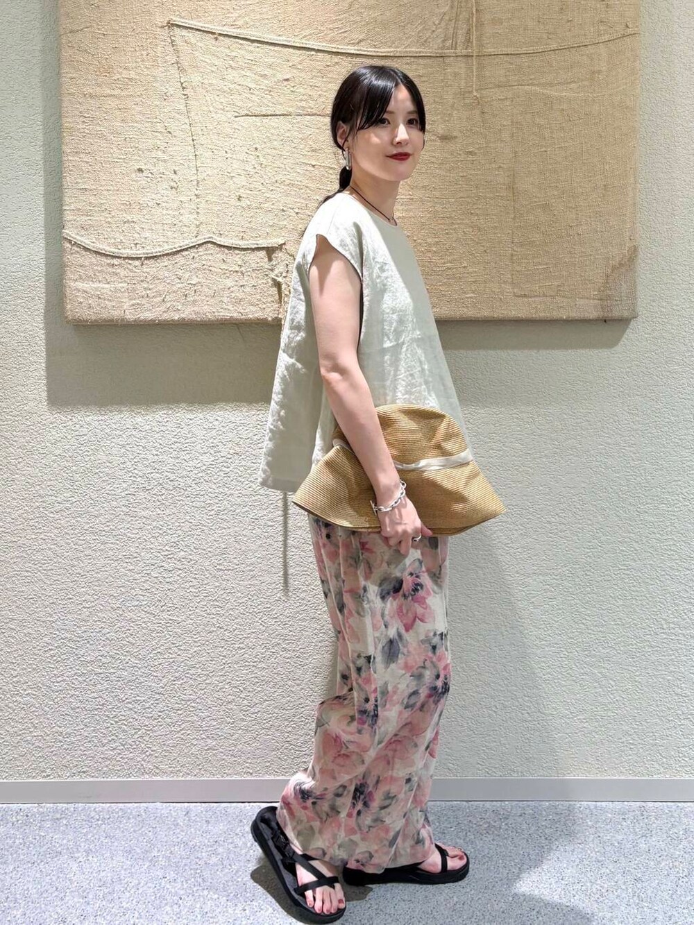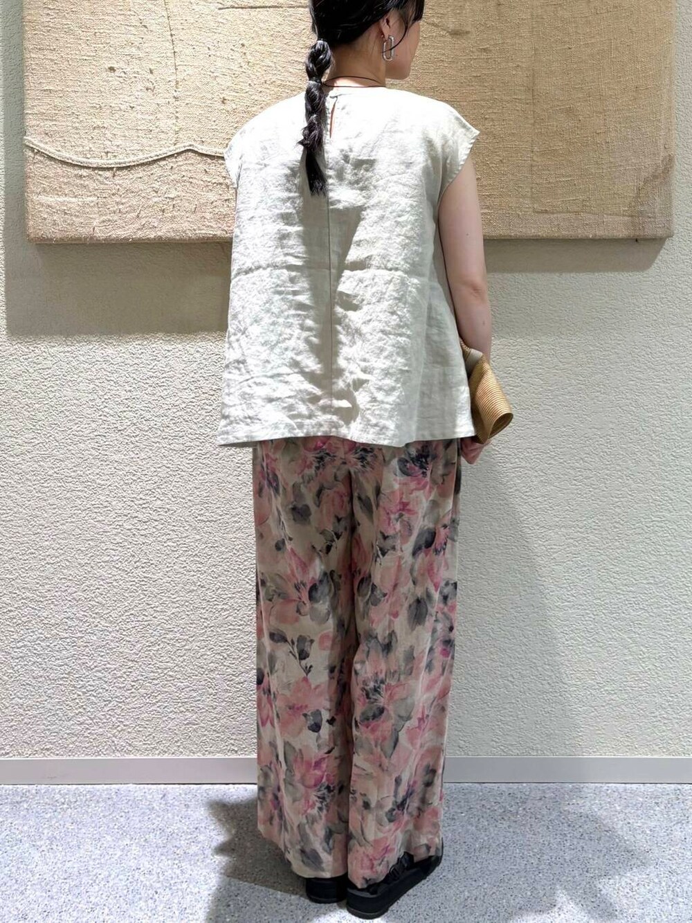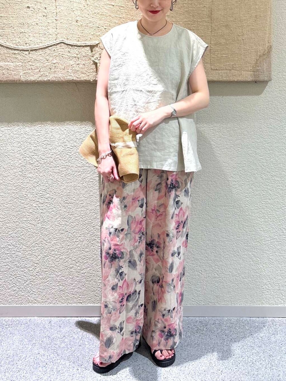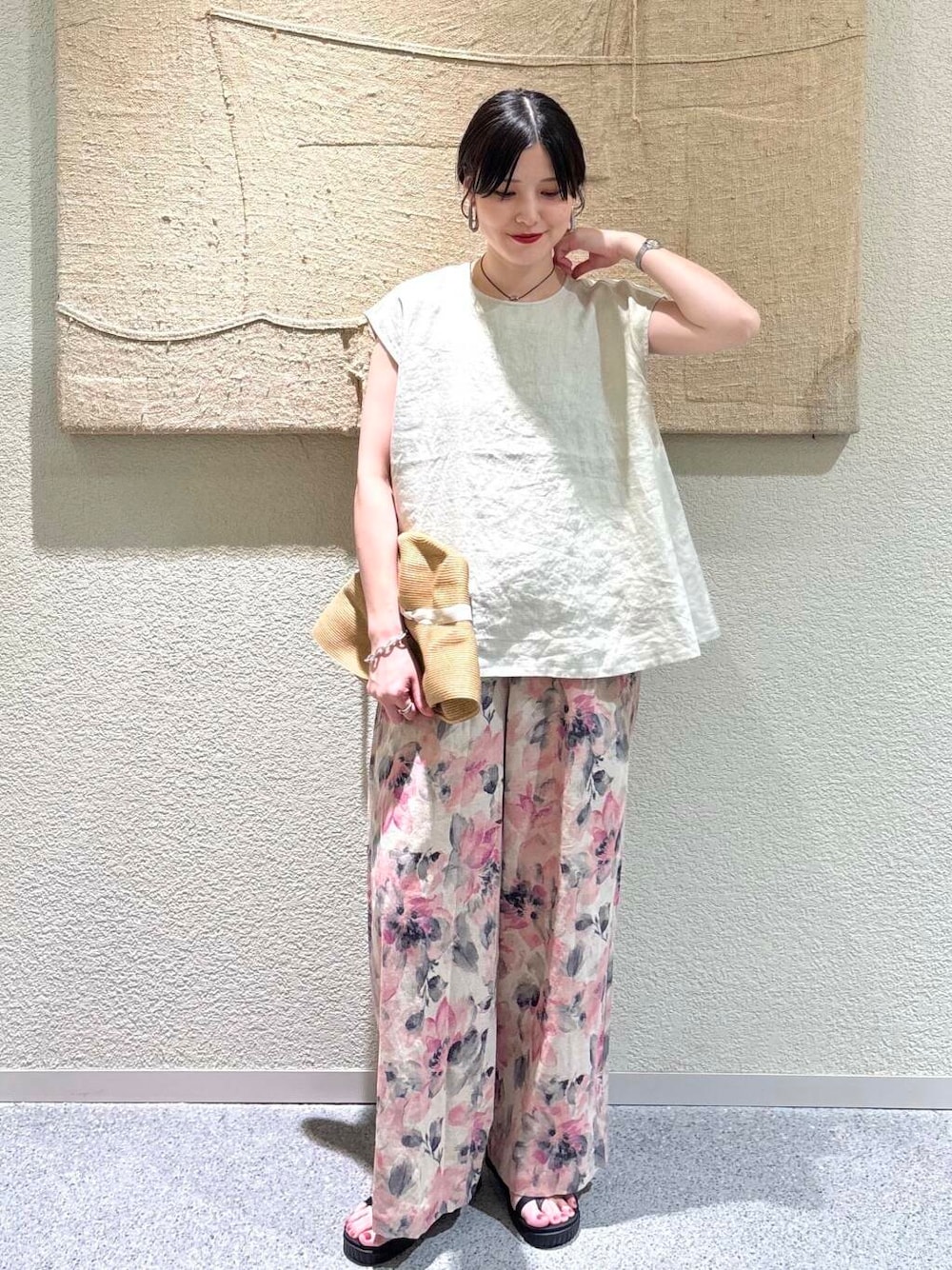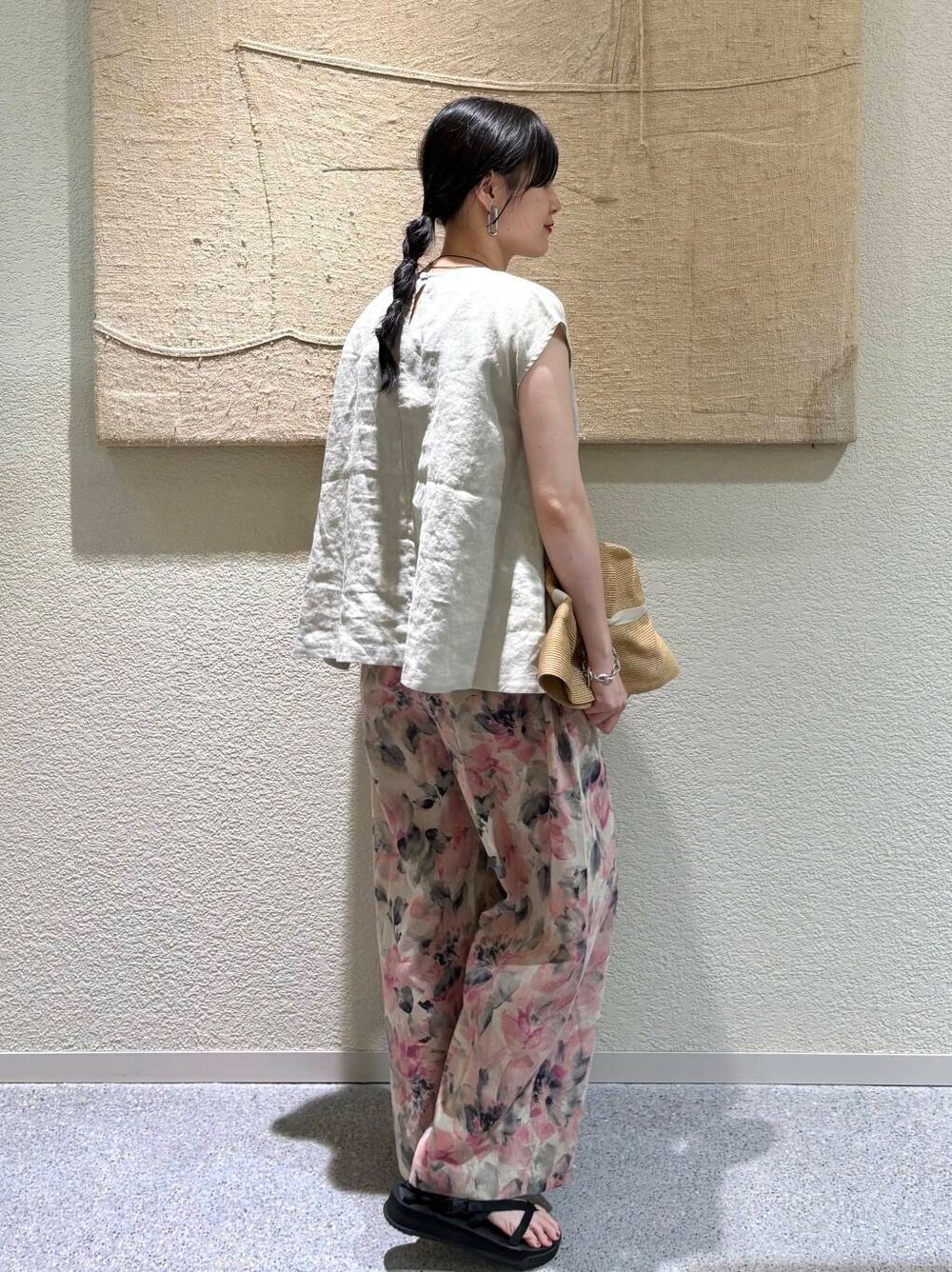 素材はコットンリネンで、さらっとした肌触りと通気性の良さがポイント。ストンと落ちるストレートラインで、脚のラインを拾わずすっきりと着こなせます。