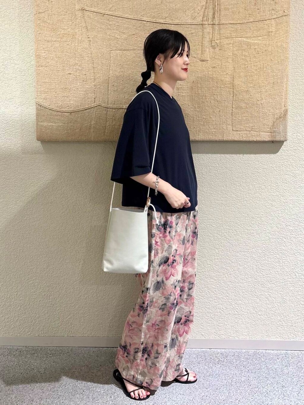 ATELIER 4.5のSACOCHE〈WHITE〉をアクセントに。コンパクトなサイズ感がスタイリングを軽快に仕上げ、ホワイトカラーが春夏の装いに抜け感を与えてくれます。必要最低限の荷物が入るミニマルなサイズ感で、お出かけにもぴったり。