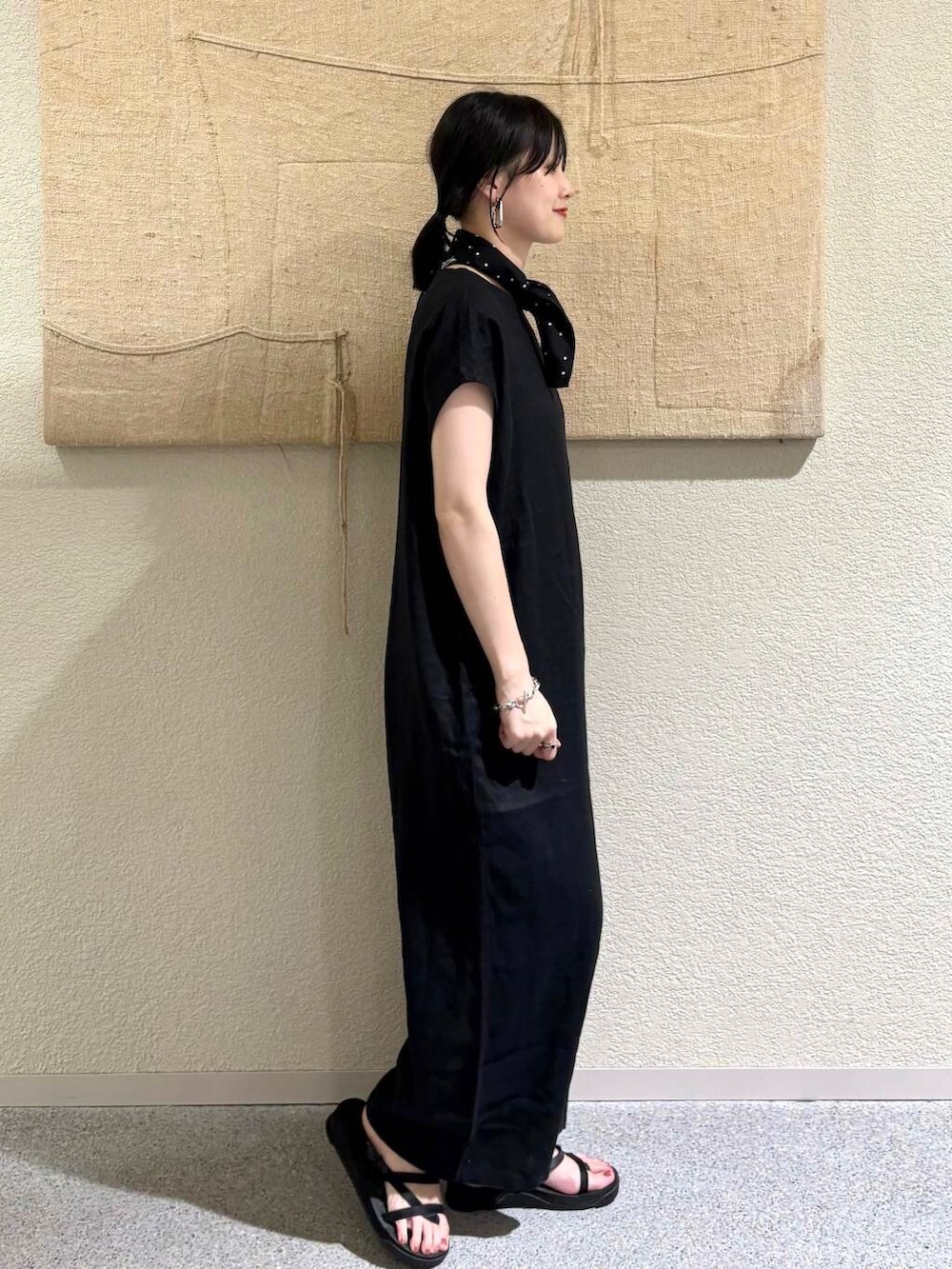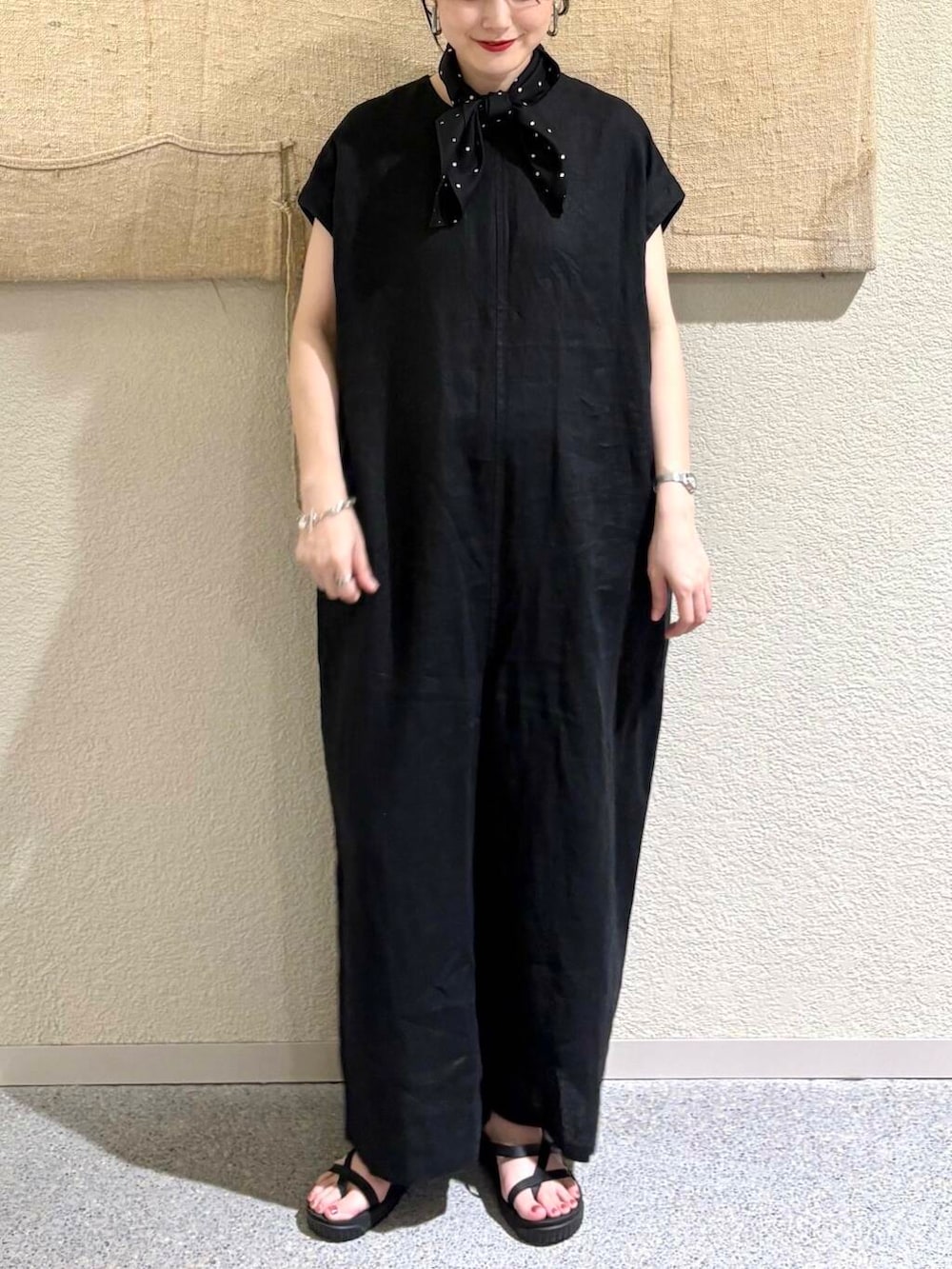 • 黒のワントーンも、リネン素材で軽やかに見える