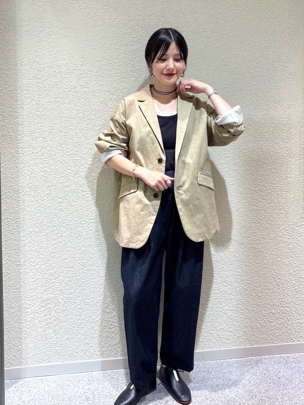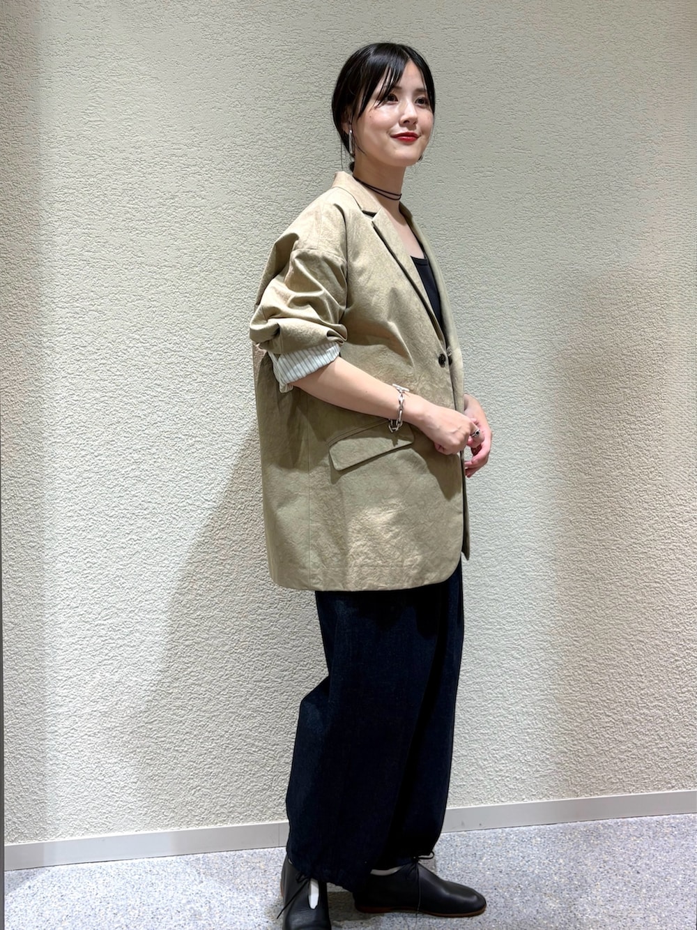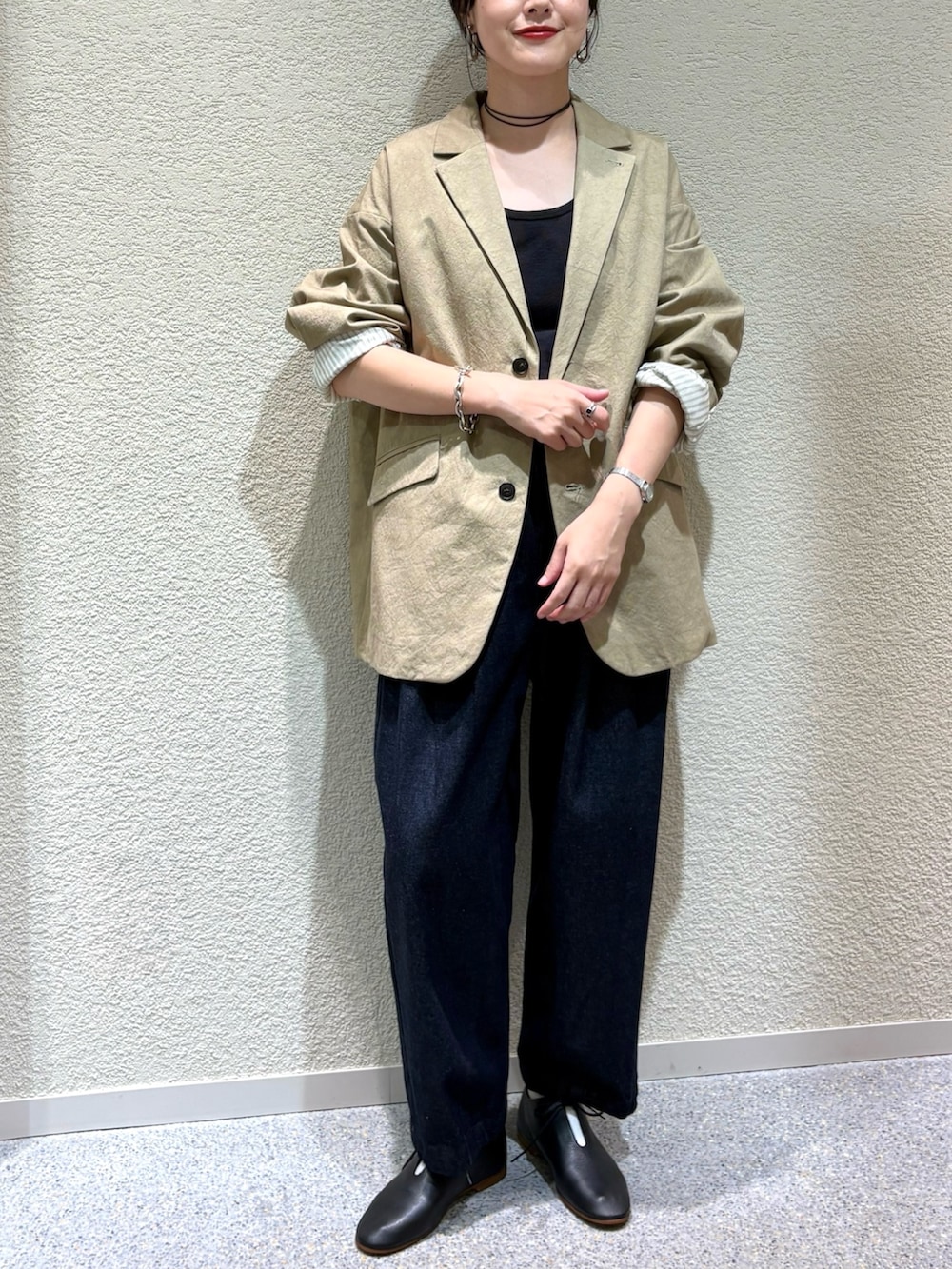 ・テーラードジャケットで大人っぽさを演出