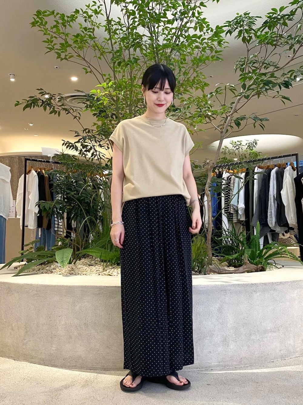 落ち感があって広がらず、気になる腰回りもすっきり見えます♩
