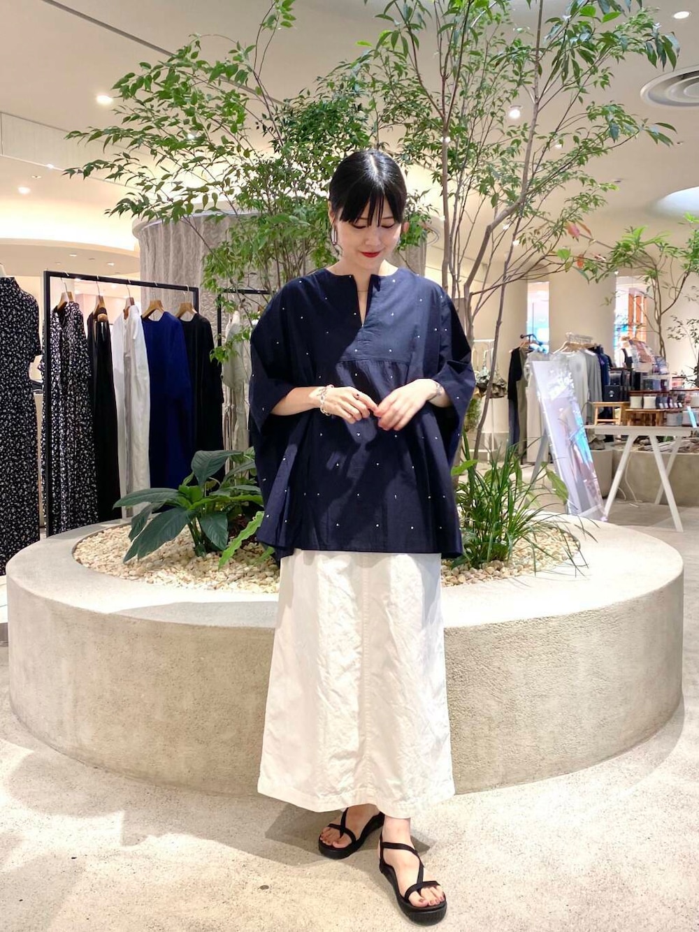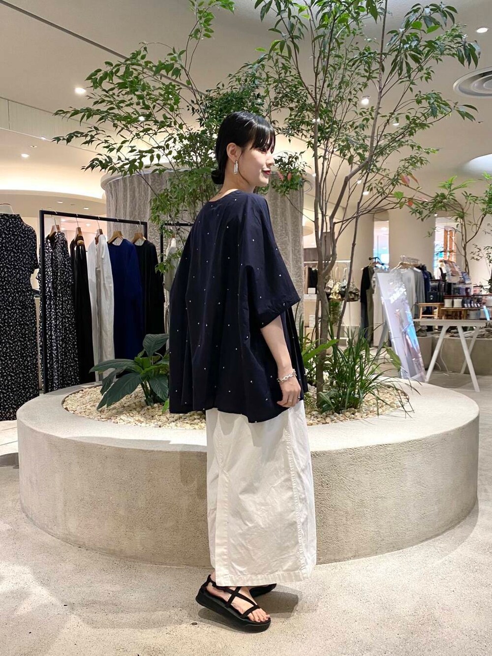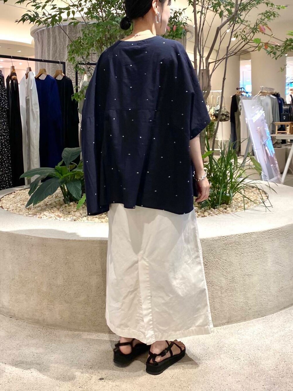 ブラウスはランダムなドットの刺繍がカジュアルでかわいいです♩