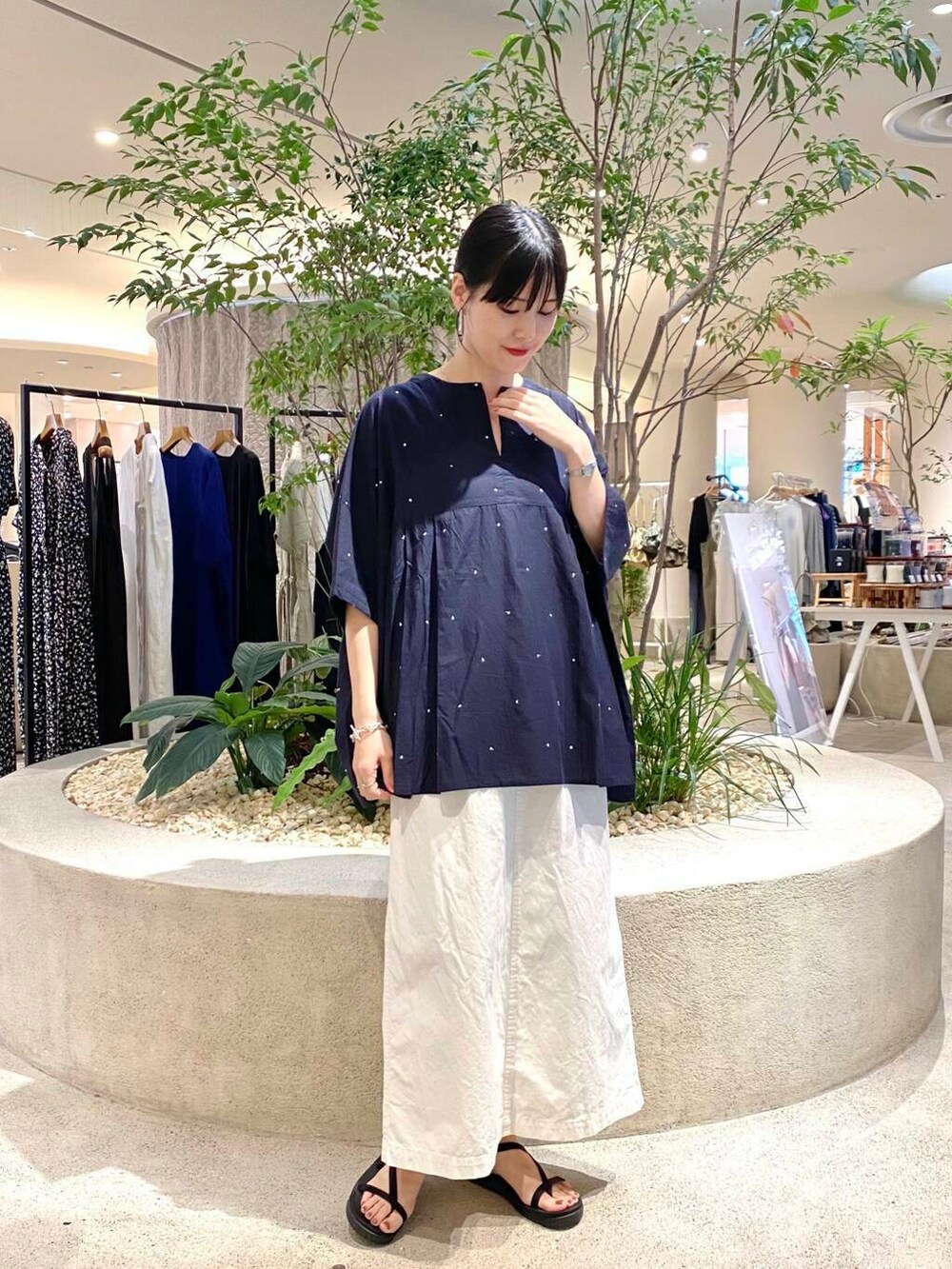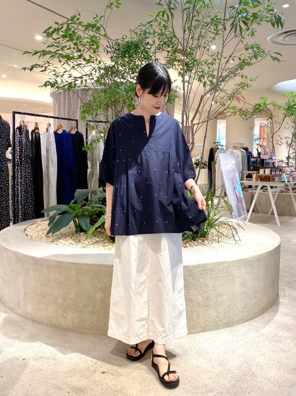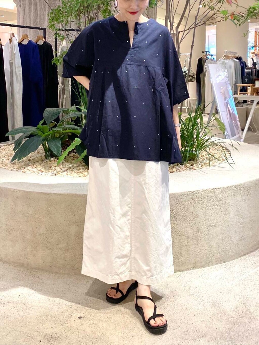 ブラウスはランダムなドットの刺繍がカジュアルでかわいいです♩