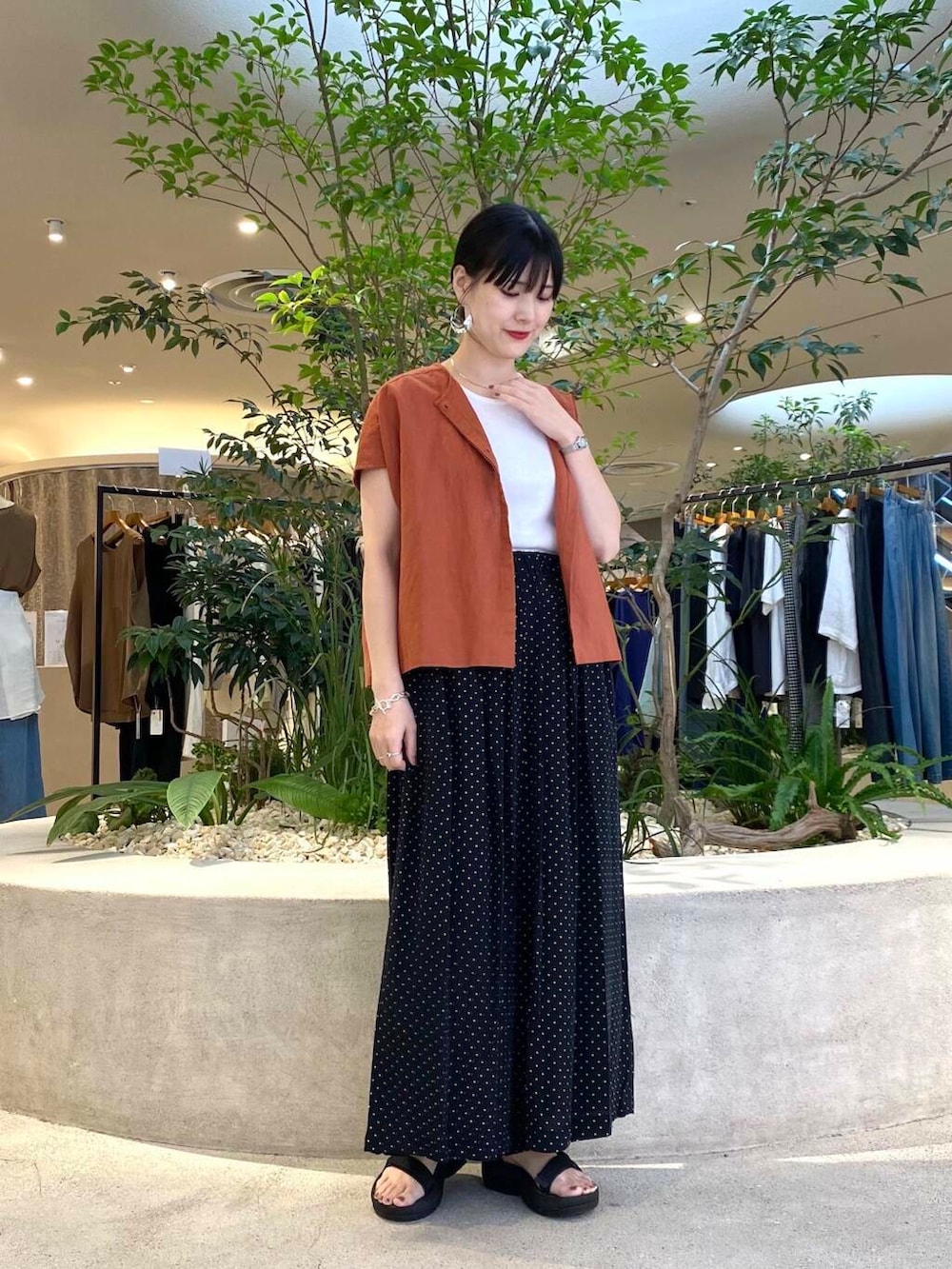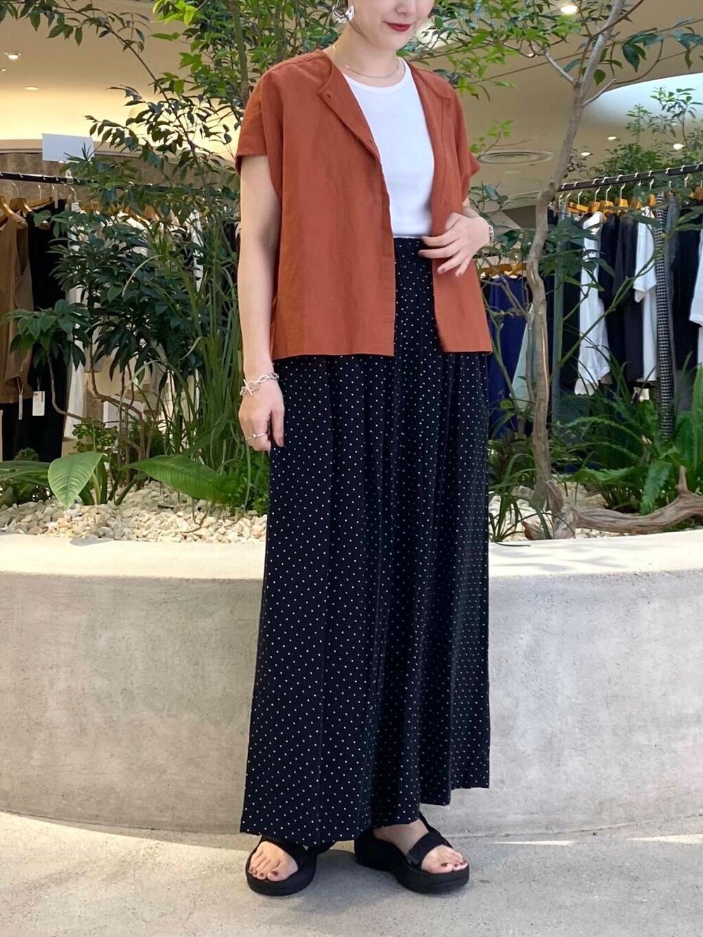 こちらのカラーはブルベの方は少しくすみがちなお色かなと思いますが、そういう場合は白のインナーを合わせることでお顔うつりが良くなり着やすくなります♩