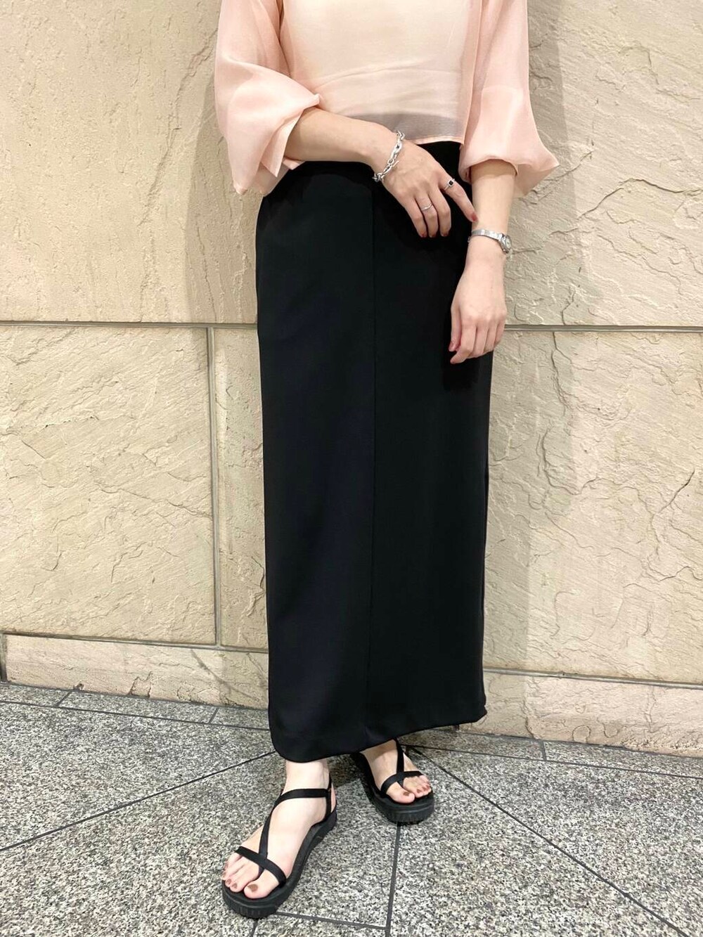サイドのスリットは小さめなファスナーで開き具合を調節できるので、バランスを見て肌見え感、抜け感も演出できます♩
