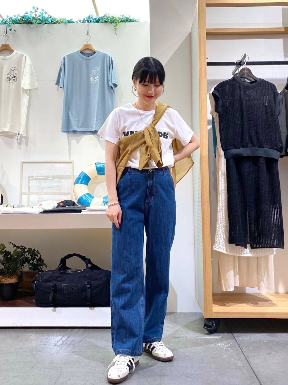 デニムはハイウエストで太すぎないワイドなシルエットなので着痩せ効果抜群です♩