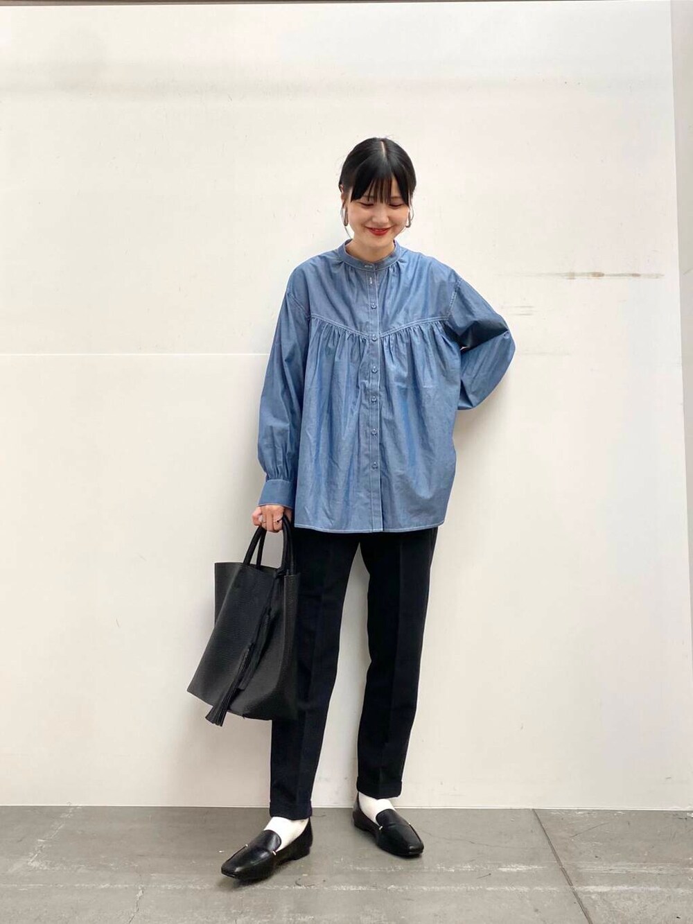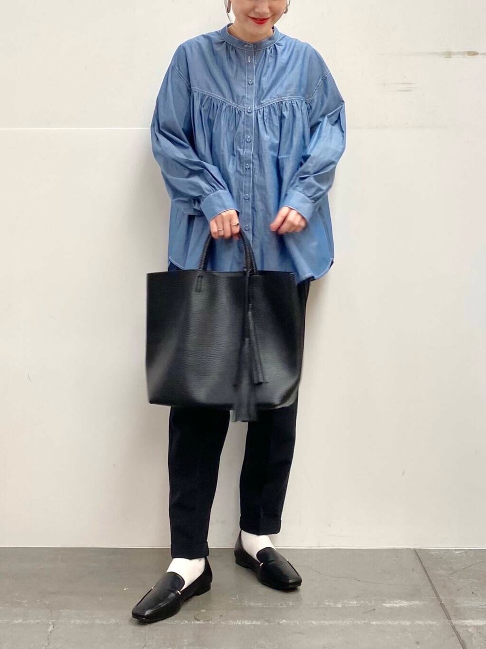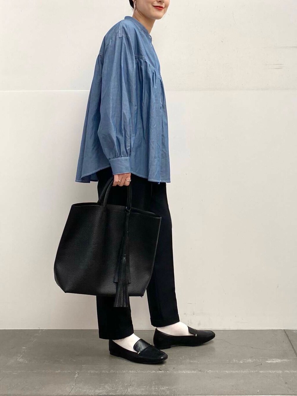 テーパードパンツと合わせてすっきりきれいに見えるようにバランスをとりました♩