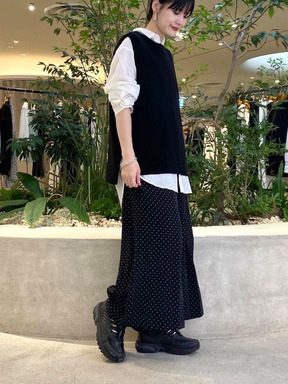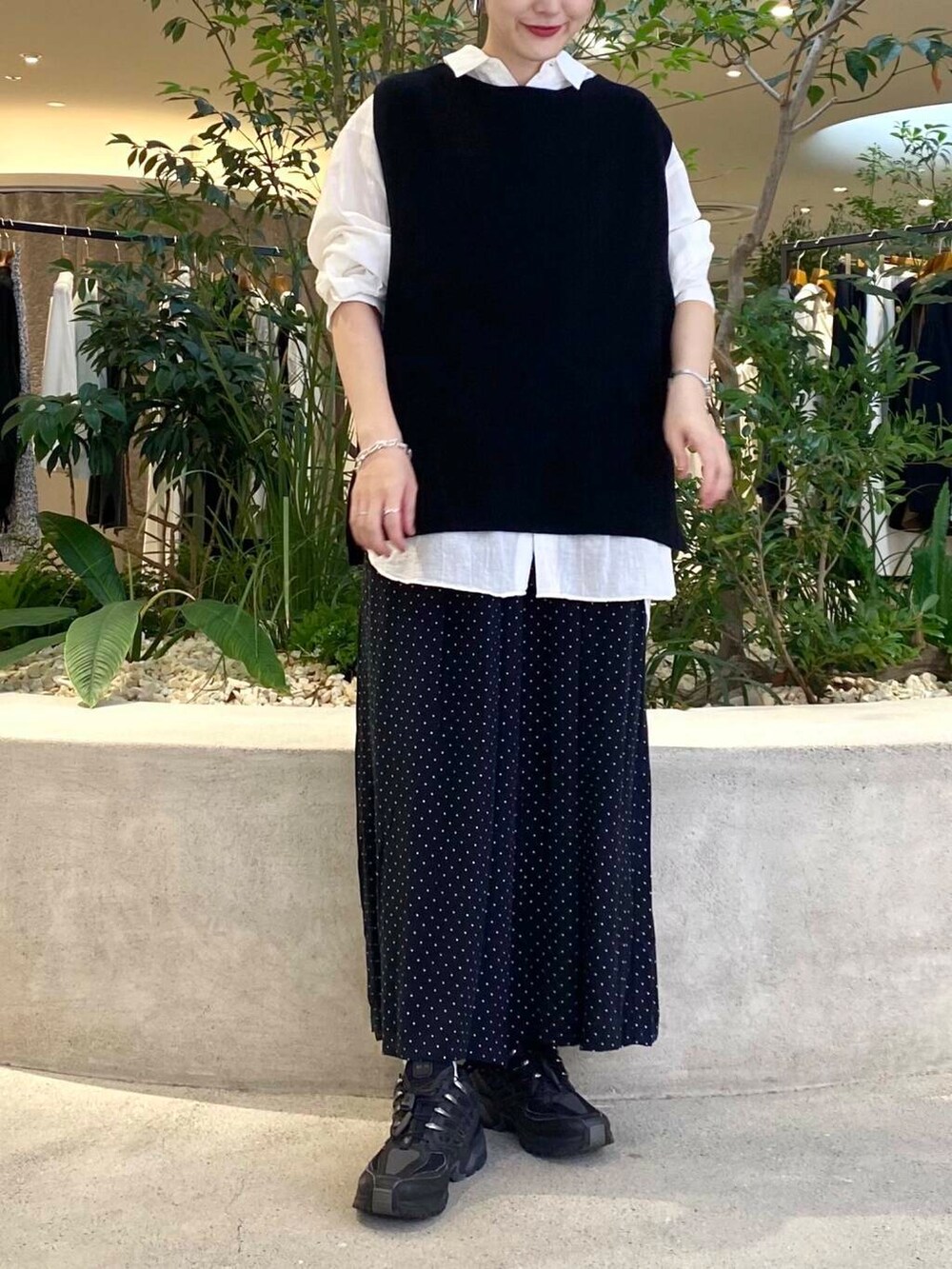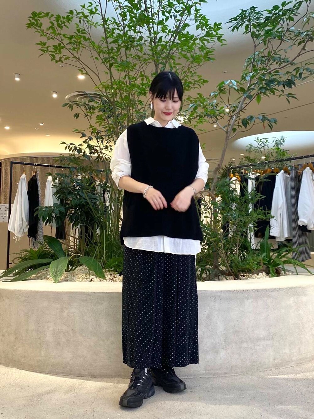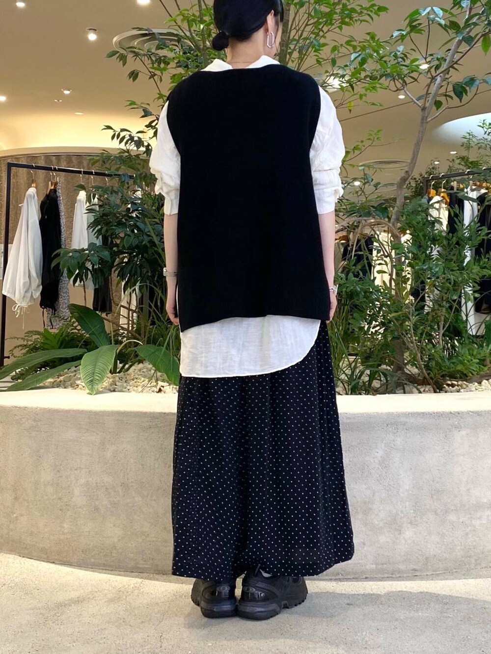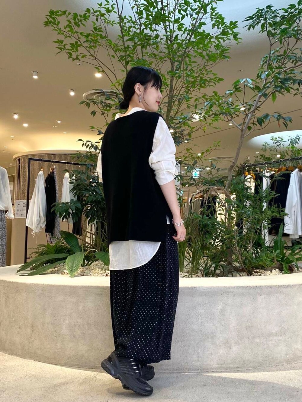ベストは長めのシャツと合わせて重ね着するのがおすすめです◎