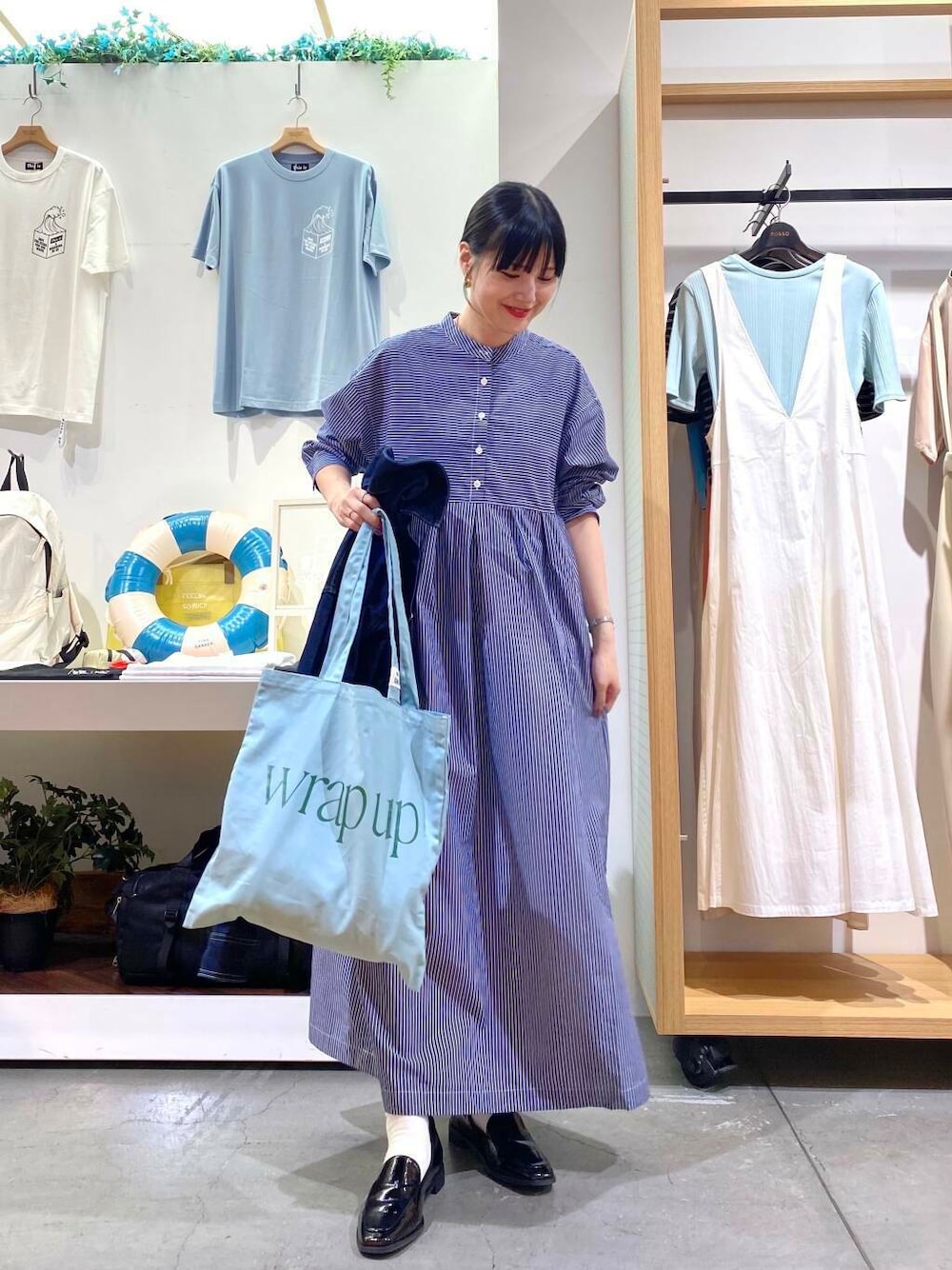 ワンピースはストライプと長めの丈感のデザインがかわいいです◎