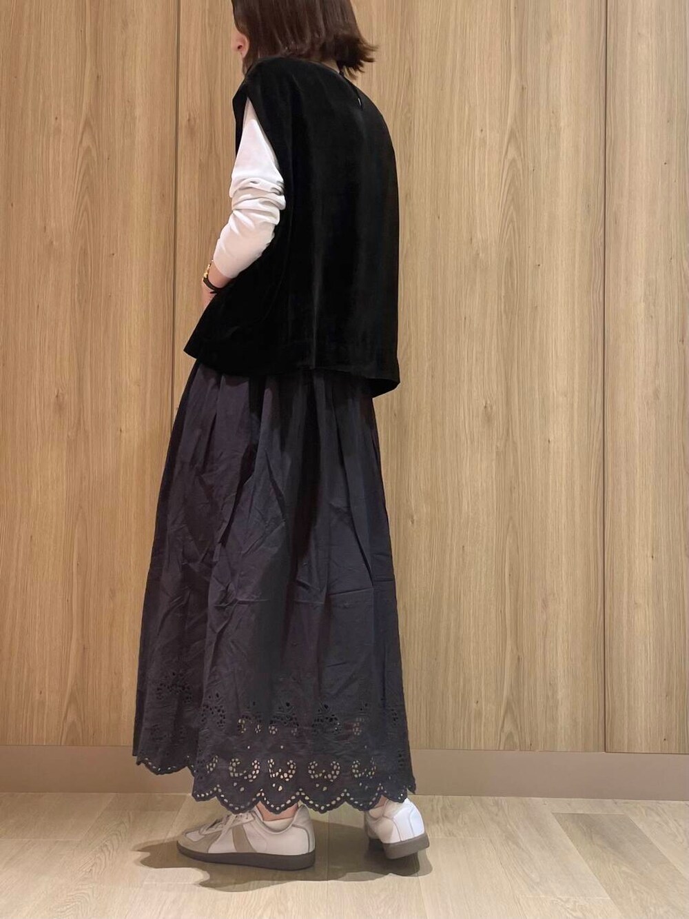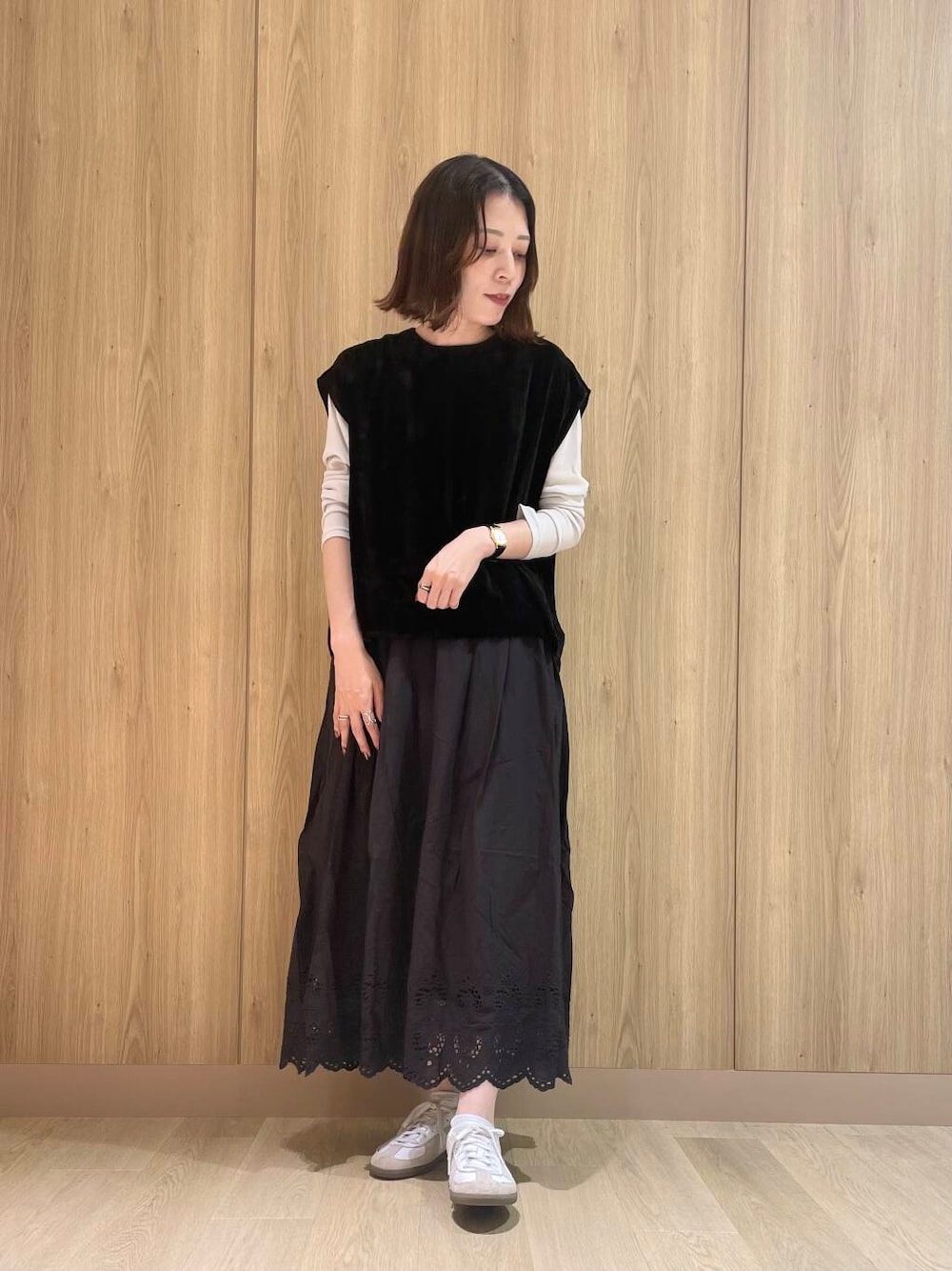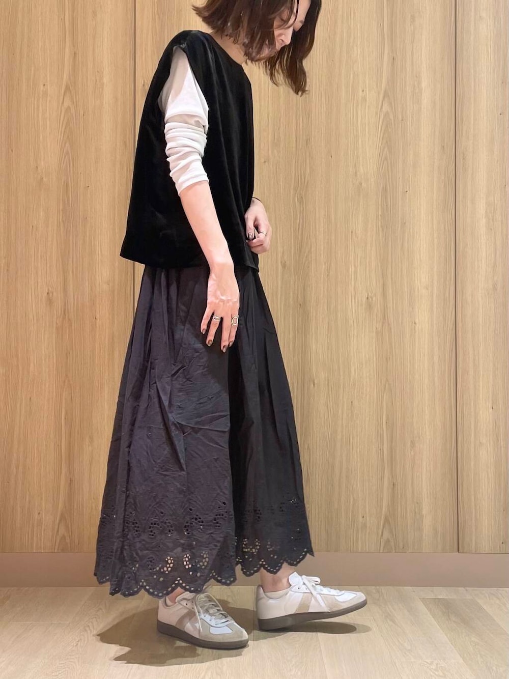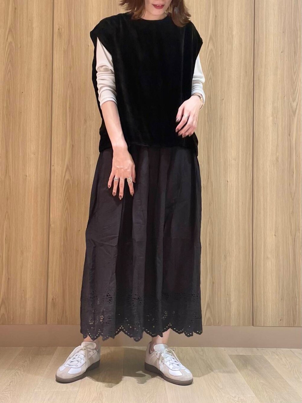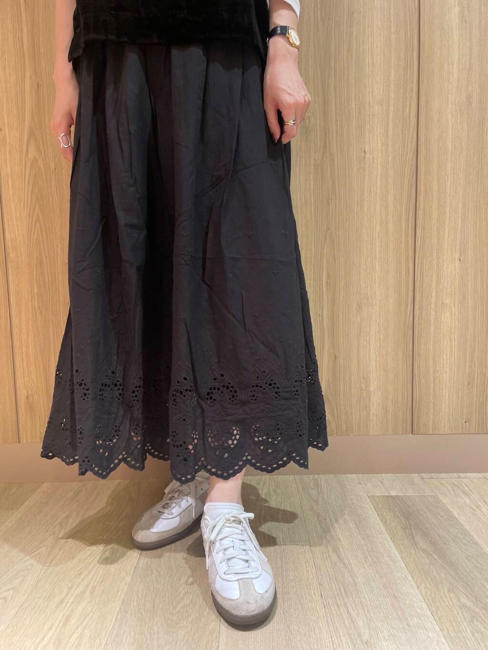 裾の刺繍がポイントのスカートです!前回の投稿で同シリーズのキャミをご紹介したのですが、スカートもとっても可愛いです◎軽いのでラクに履けて、シーズンも長くお使い頂けます!寒くなってきたらゆるっとしたスウェットやニットと合わせるのも可愛いです!